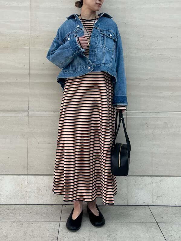 女性らしいナローシルエットも特長。フレアラインでゆったりしつつも広がりすぎず、すっきりと見せてくれます。