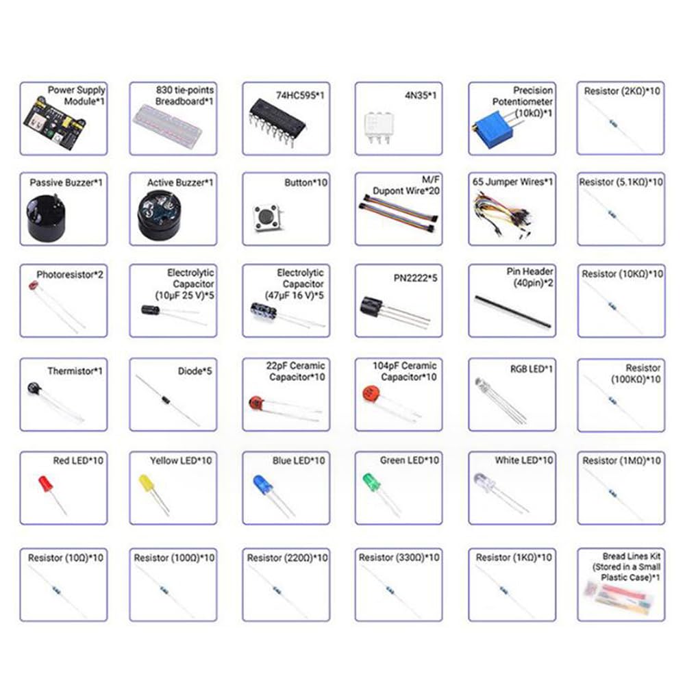 GOODCHI 電子エンターテインメントキット 新しいブレッドボードセット 電子部品スターター パワーモジュール DIYキット 830接点ブレッドボード R3用 コンポーネントパッケージ プラスチックボックス付き