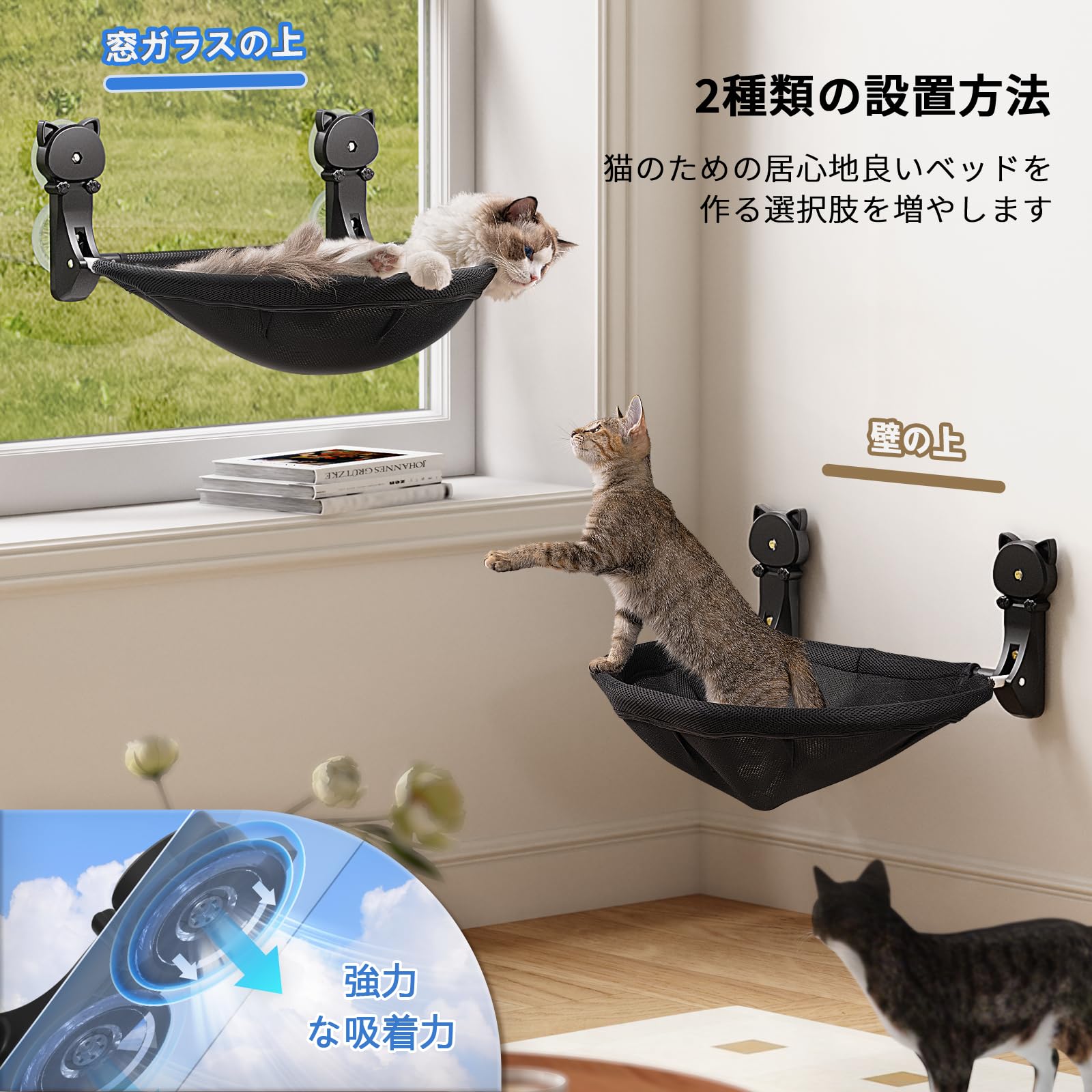 【数量限定】猫窓用ハンモック 折り畳み式 猫 ベッド 吸盤式 猫 ハンモック 窓掛け 猫ベッド 耐荷重18kg(50*36cm)取り付け簡単 取り外し可能(ジッパー設計) キャット日光浴 睡眠 運動 休憩 四季兼用 通気性 ブラック | asaRulu0511