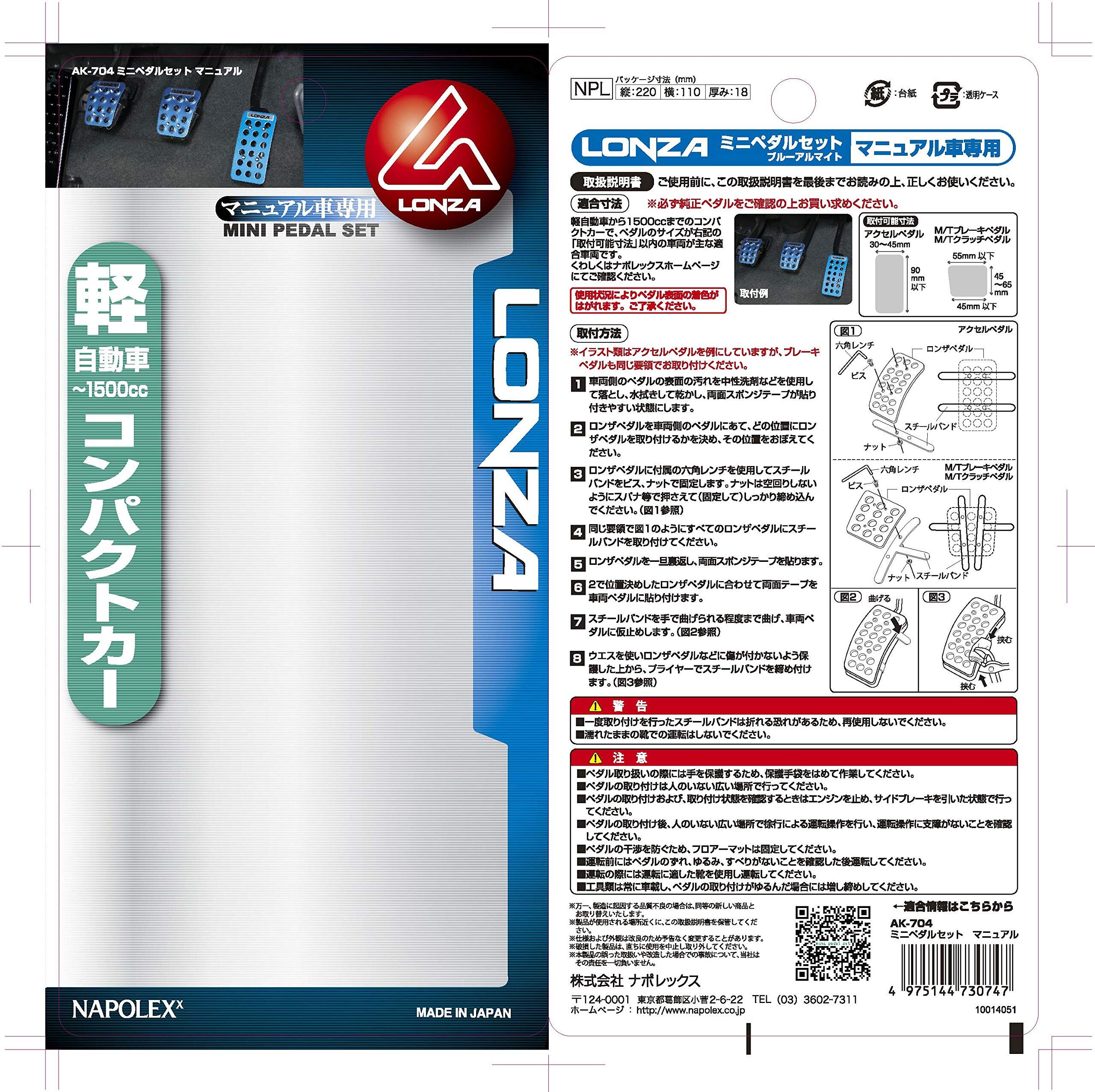 ナポレックス(Napolex) LONZA 車用アルミペダル MT車専用 ミニペダルセット スポーツペダル 軽自動車 コンパクト車向け ブルー カー用品 AK-704