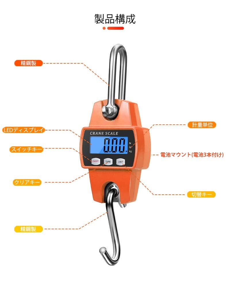 吊りはかり 300kg クレーンスケール 吊り下げ秤 携帯式 吊秤 コンパクト スーパー 倉庫 精密 計量 吊り秤 吊り下げ 玉掛け 吊り上げ 天秤 荷物 動物 自家用 商売用 産業用 防水 防塵 頑丈 高精度重量計 単四電池3本