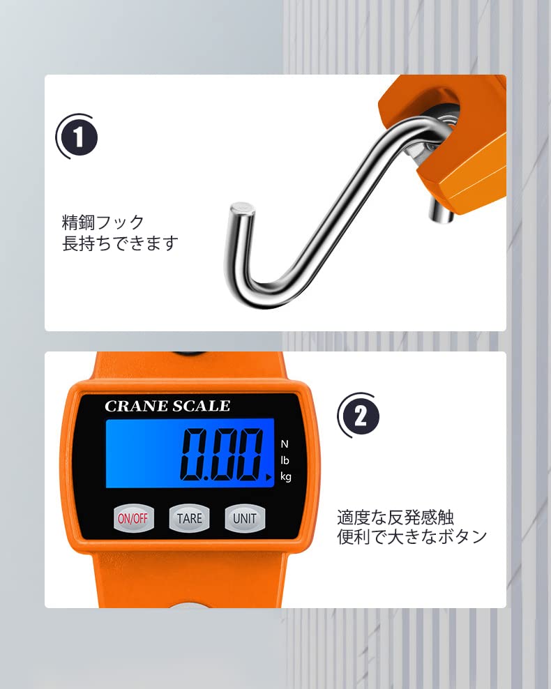 【広い使用】海外旅行、お釣り、家庭用、街路用、食品市場用、応急用、狩猟など用の計量デジタルクレーンスケールに最適です。手頃でおしゃれな外観をもっているデジタルクレーンスケールはあなたのベストの選びです。