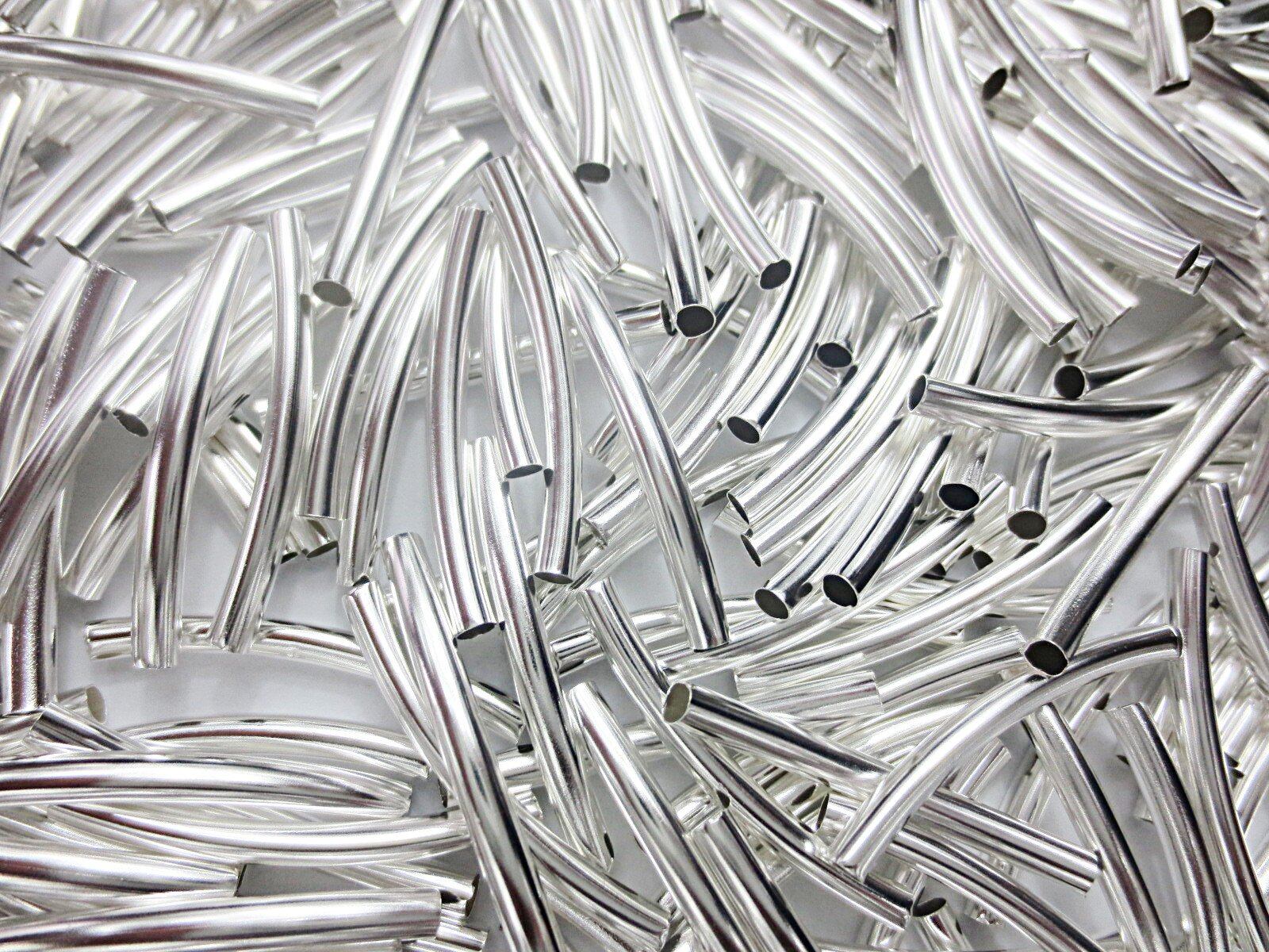 200個 メタルチューブ ビーズ シルバー 30mm 管ビーズ 手芸材料のヒューイ h934