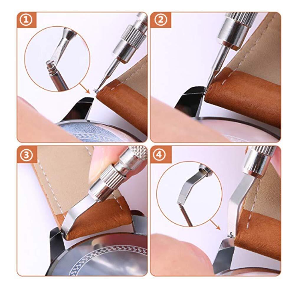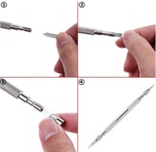 ①1セットを持っておくと便利な腕時計ベルト交換用工具です。