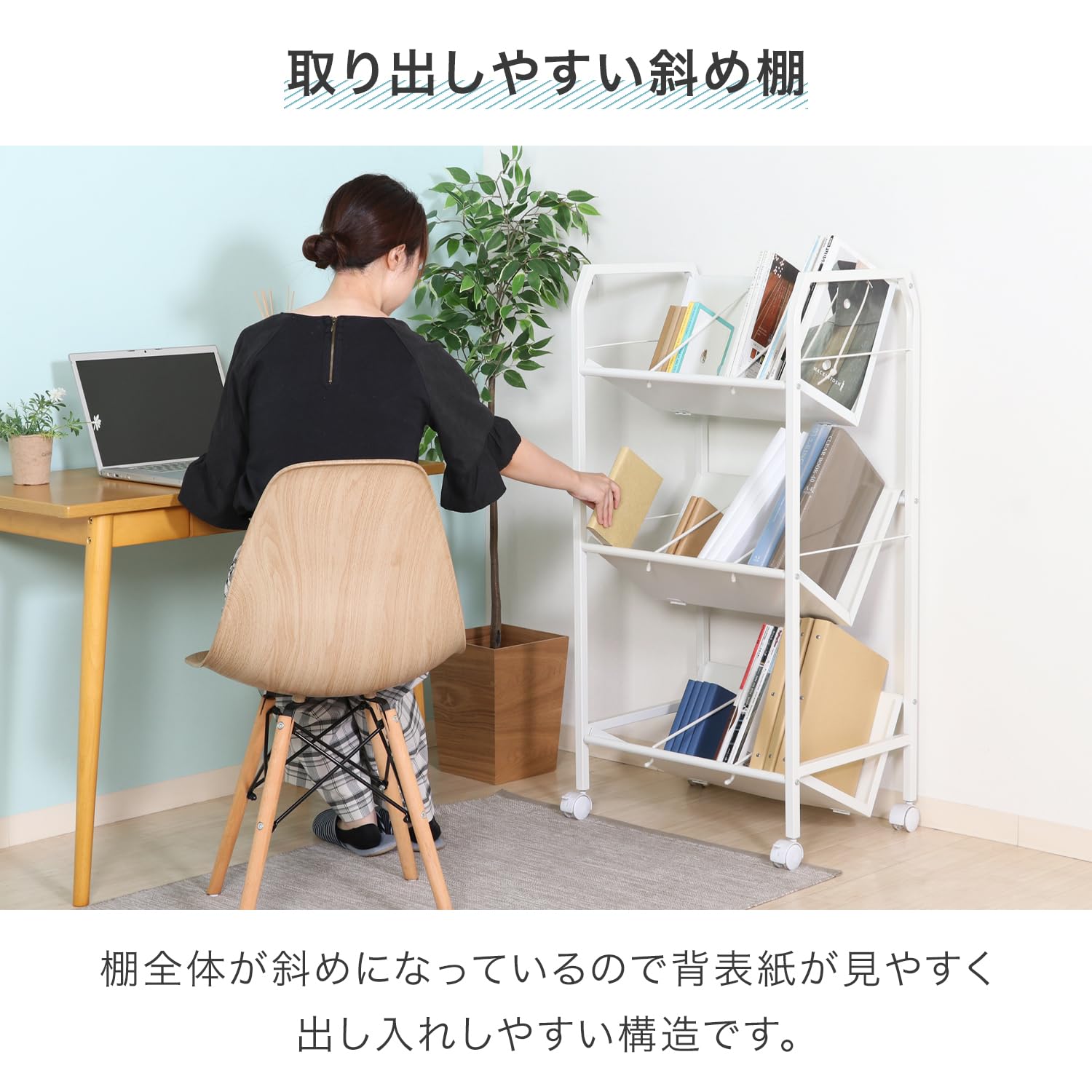 不二貿易 ファイルラック ファイルワゴン 3段 幅55×奥行40×高さ112cm ホワイト 書類収納 A4収納 キャスター付き 13310