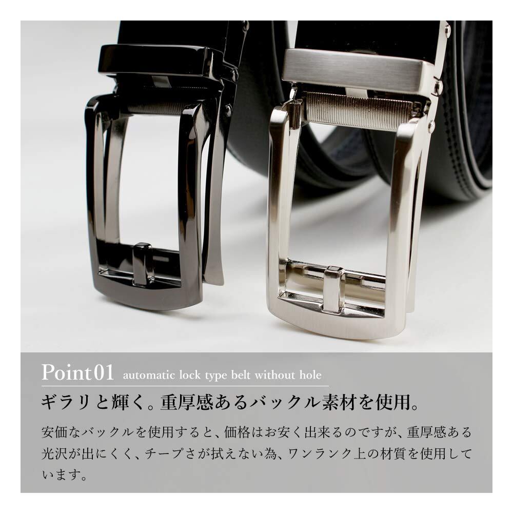 【特価商品】[アトリエサンロクゴ] ビジネスベルト 穴なし オートロック式ベルト ベルト メンズ 本革 牛革 レザーベルト ウエスト調整 ワンタッチ スライドベルト
