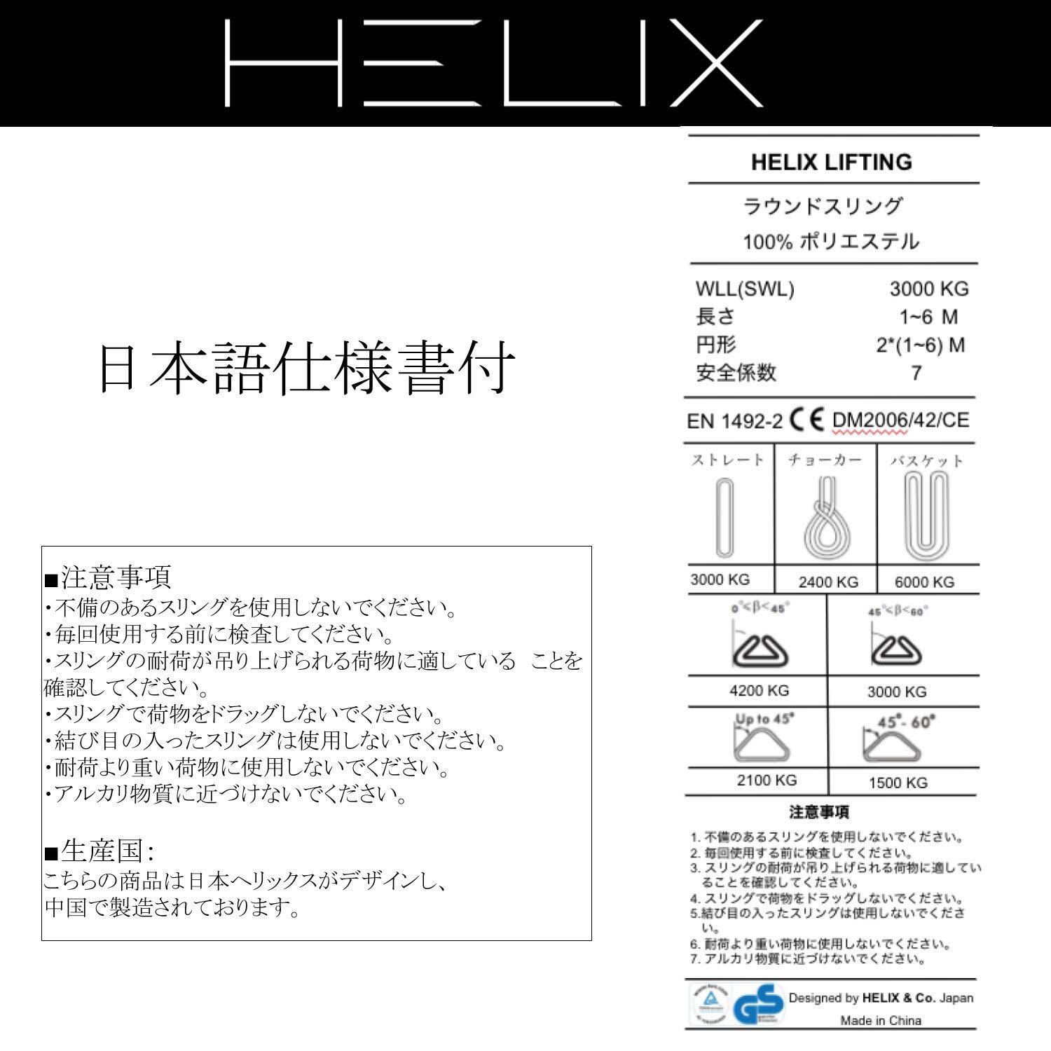 HELIX ラウンドスリング 2本セット 1m 幅60mm 使用荷重3000kg ナイロンスリング 吊上げ 牽引 エンドレスタイプ 3T 日本語仕様書付
