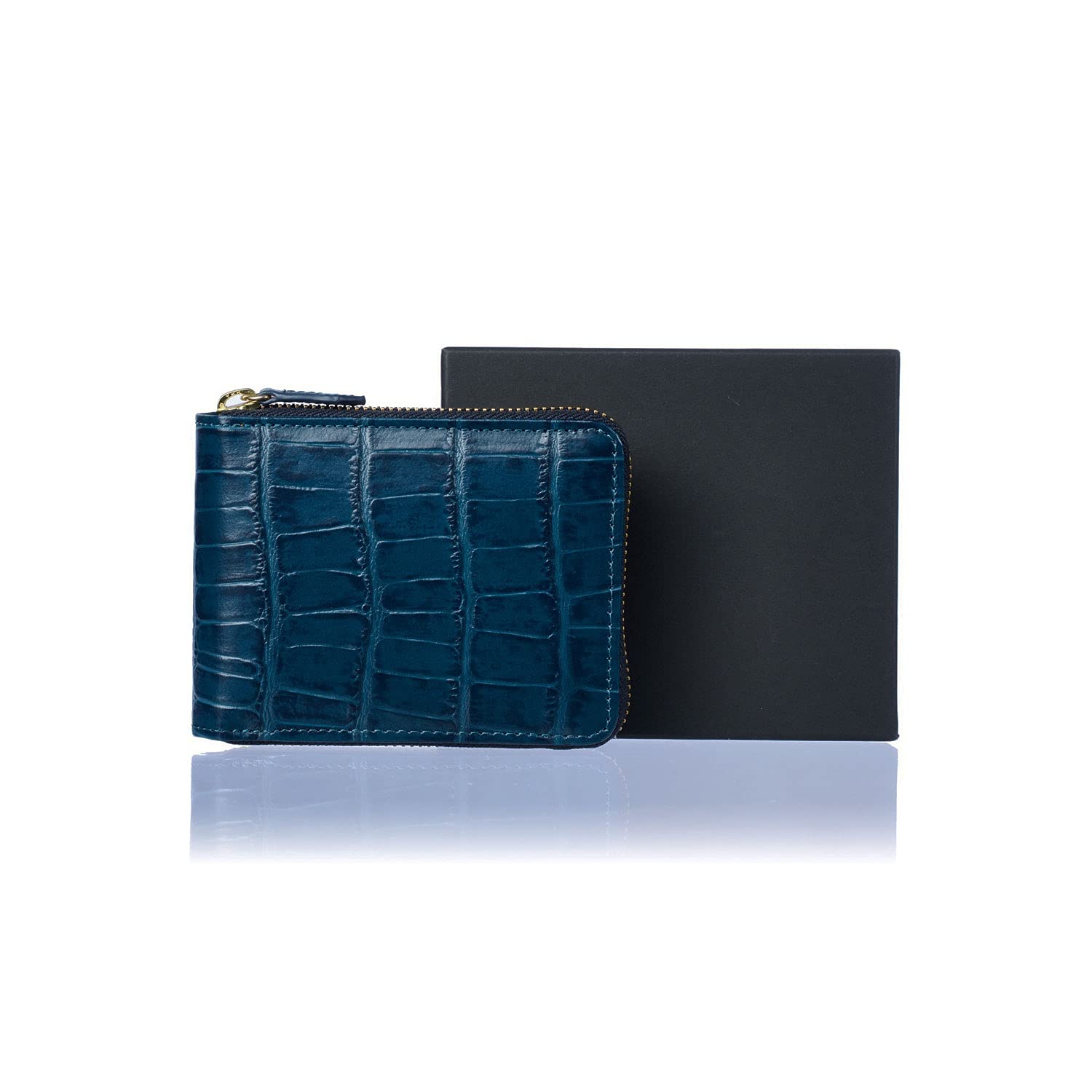 [CHRISTIAN BELETT] イタリア ORION社製 牛革 メンズ 二つ折り 財布 クロコ 型押し 分厚くなりにくい ラウンドタイプ (Black)