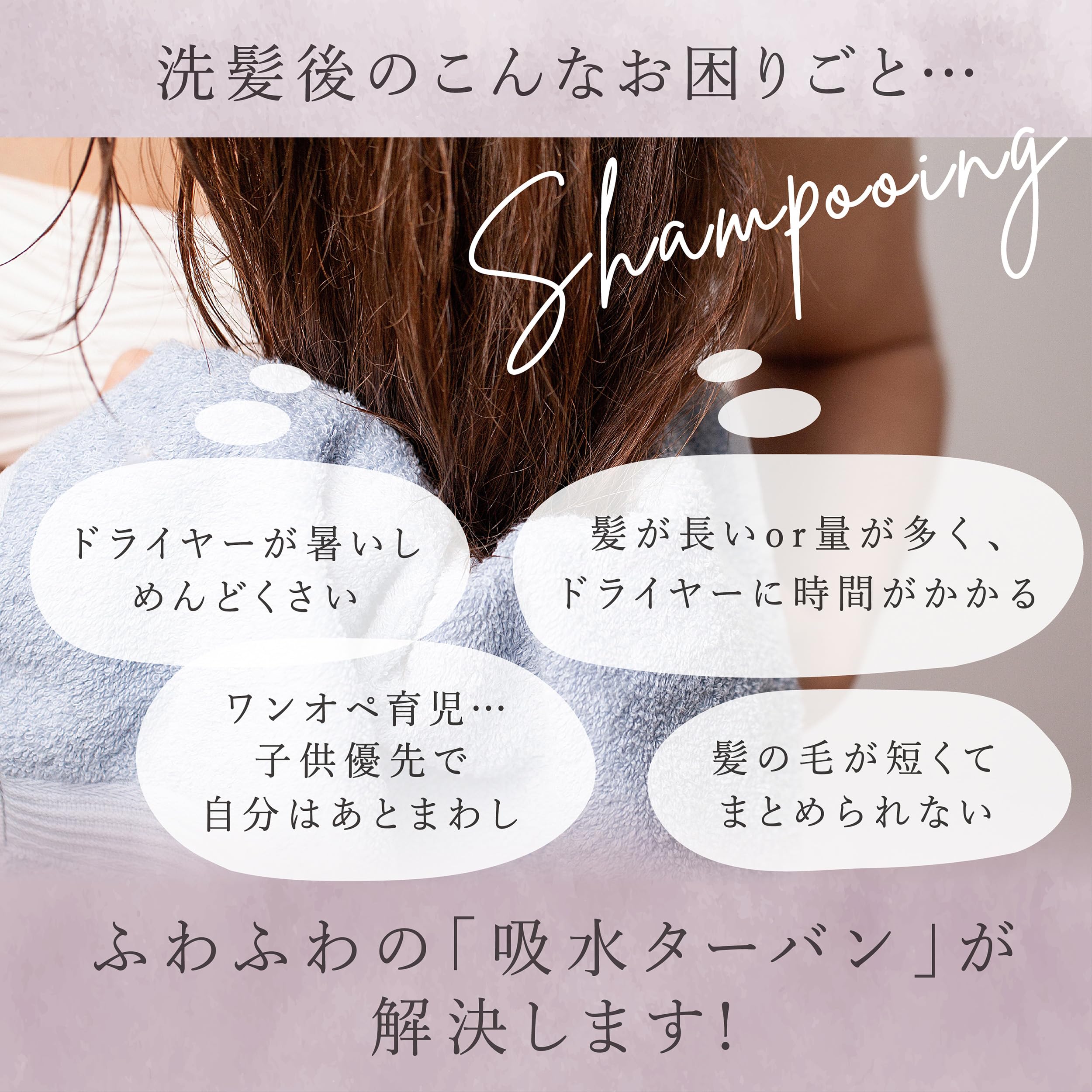 ●毛足の長い極細繊維(マイクロファイバー)の生地を使用した、たっぷり吸水する肌ざわりのよいターバンです