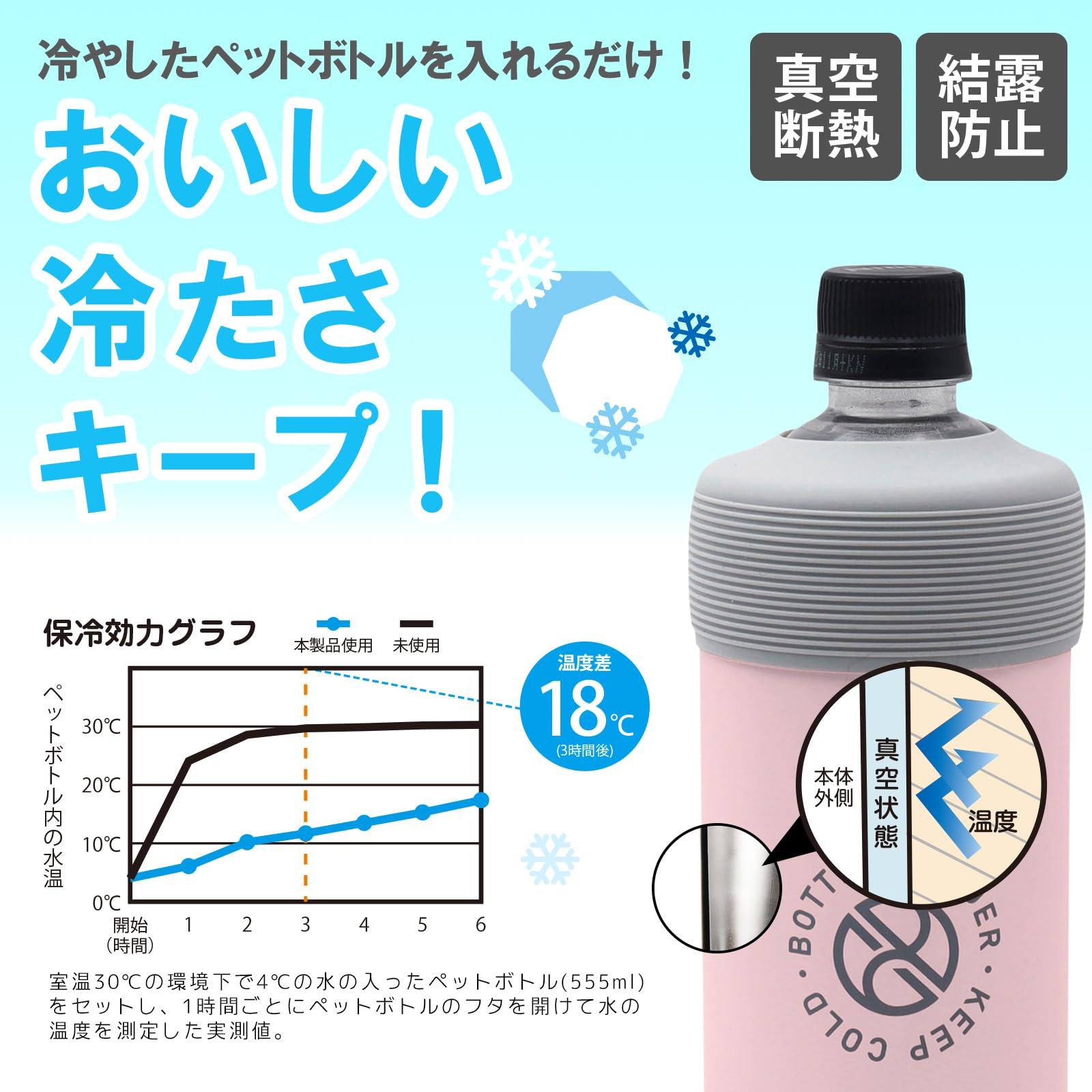 ■商品サイズ(フタ装着時):約φ8.1×h17.1cm/重量約225g (ホルダー本体のみ):約φ7.5×h16.9cm/容量約600ml(満水) ■ ■生産国:生地=中国、絵付加工=日本 ●真空断熱二重構造で冷たさ長持ち! ●結露しないからカバンの中やデスクでも安心して使えます。 ●耐久性・耐錆性に優れた18-8ステンレス素材を使用。 ●本体直径約7.5cmのスリムボディで女性でも持ちやすく、車のドリンクホルダーにも入ります。 ※ホルダーの形状によっては対応していない車種もあります。 ●滑り止め加工が施されたシリコーン蓋でキャップの開閉時にペットボトル本体が回転しにくくなっています。 ●シリコン蓋の着け外しが簡単にできます。 ●500~600mlのペットボトルに対応しています。 ●シリコン蓋を外せば直飲みタンブラーとしてハイボールやカクテル、ビールなどにもお使いいただけます。 ●アウトドア、スポーツ、オフィス、ドライブ、家呑みなど様々なシーンで活躍してくれます。