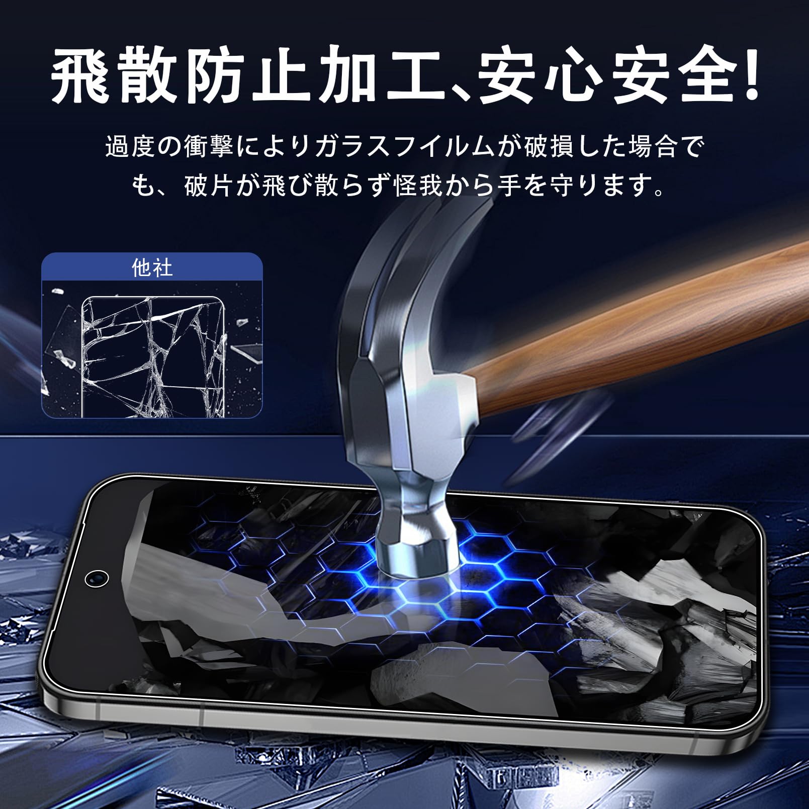 【硬度9H・飛散防止】旭硝子素材を採用、業界最高レベルの9H硬度、ハードコーティング技術により、衝撃を緩和し画面の破損を最低限まで抑えます。飛散防止加工により、万が一割れてもガラス破片が飛び散りにくい。側面は曲面加工されて、99%以上のスマホケースとの相性が良いです。