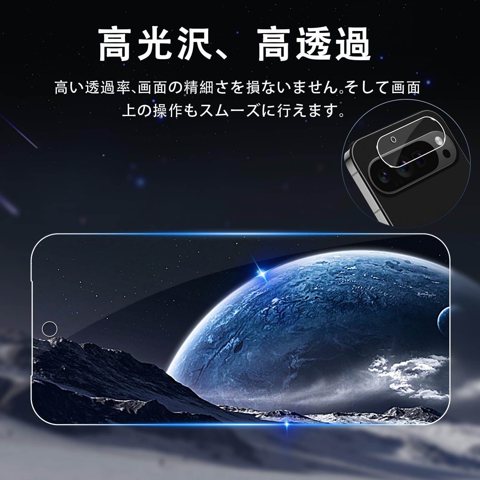 【対応機種・セット内容】対応機種:Google Pixel 9 Pro XL専用 ガラスフィルム です。セット内容:2枚セットの Google Pixel 9 pro xl液晶用ガラスフィルム+2枚入りのカメラフィルムを含まています。