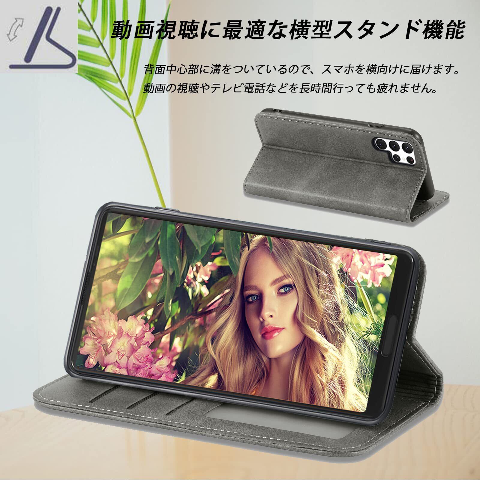 Galaxy S23 Ultra ケース手帳型 docomo SC-52D au SCG20 ケース サムスン ギャラクシーs23ウルトラ 手帳型ケース 携帯ケース カバー スマホケース 手帳型ケース 携帯カバー 肌触り良い PUレザー ストラップホール付き カード収納 財布型 Sumsung galaxy s22 ultra case マグネット内蔵 スタンド機能 耐衝撃 全面保護 薄型 軽量 防水 耐摩擦 シンプル ビジネス風 大人可愛い 男女兼用 (Samsung Galaxy S23 Ultra SC-52D SCG20 対応) グレー