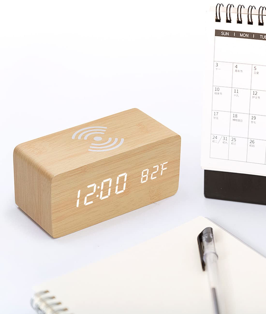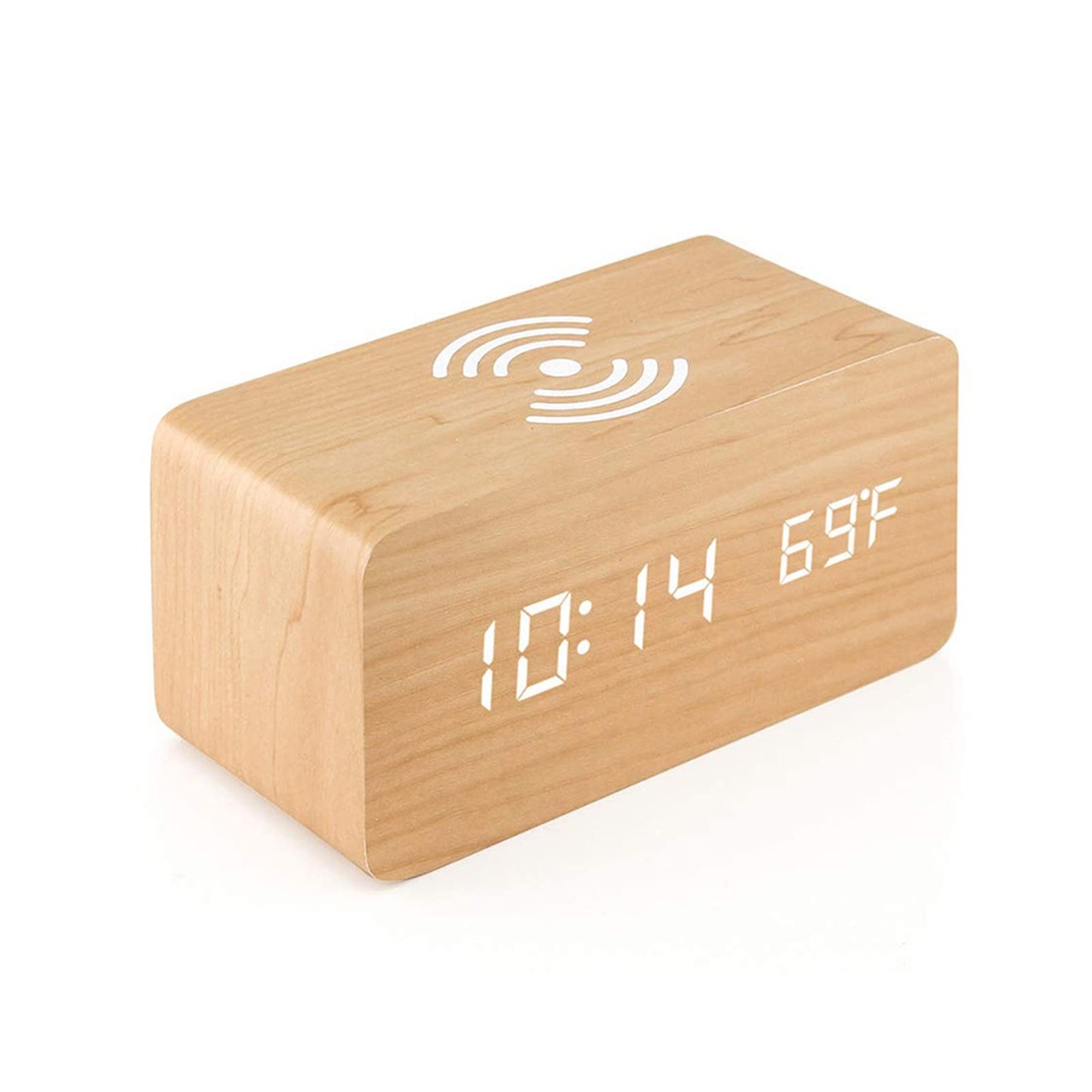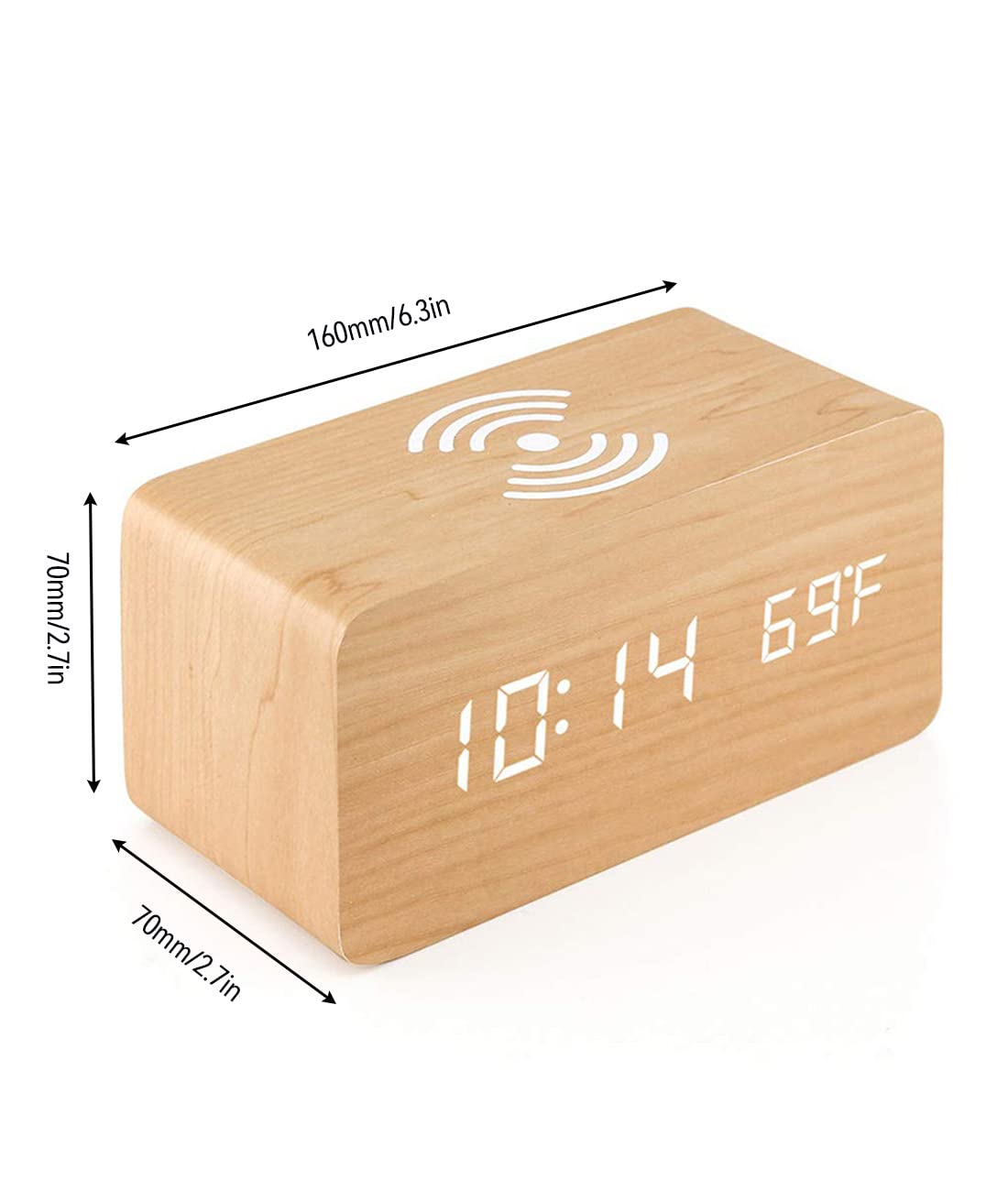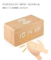 目覚まし時計 木目 デジタル時計 温度計 スヌーズ 音声感知 携帯充電 おしゃれ 多機能 見やすい 明るさ 光量調節可能 光センサー自動調光 大画面 LED時計 置き時計 部屋 USB給電式 電池給電式 バッテリなし オフィス 日本語説明書付き (おしゃれ木目)