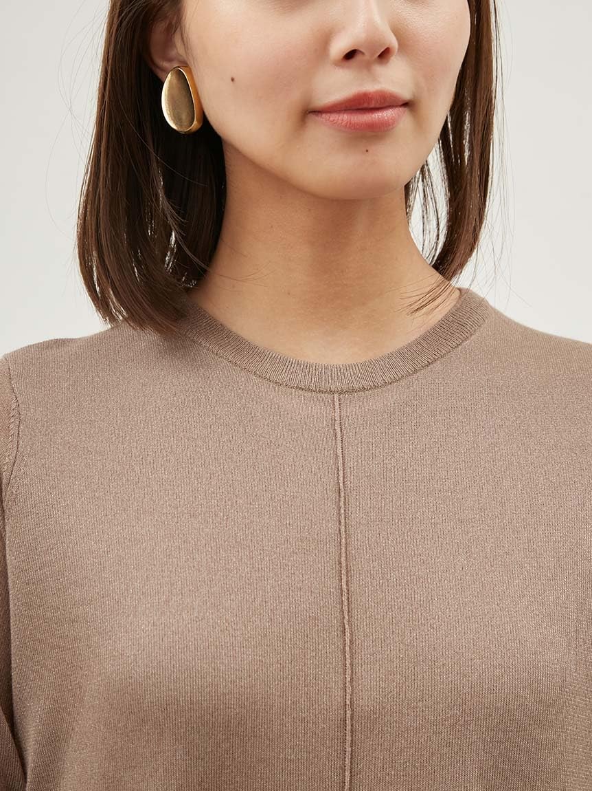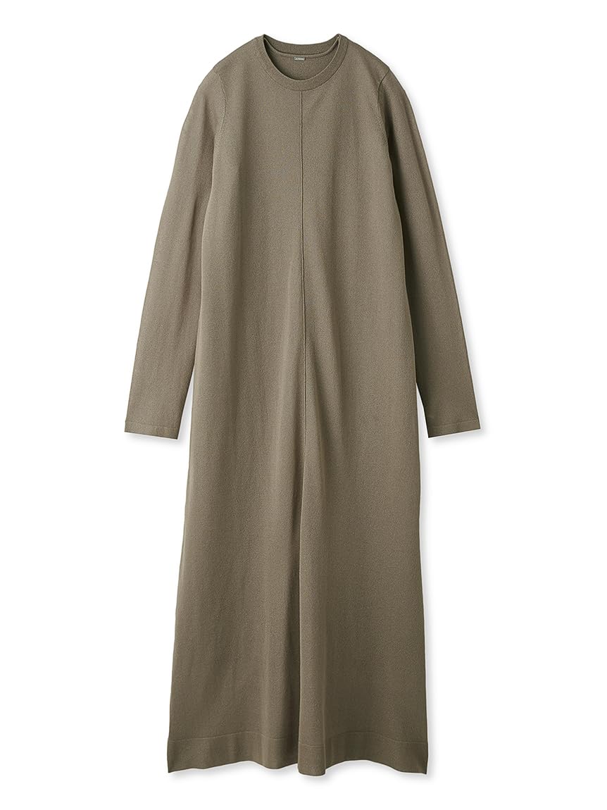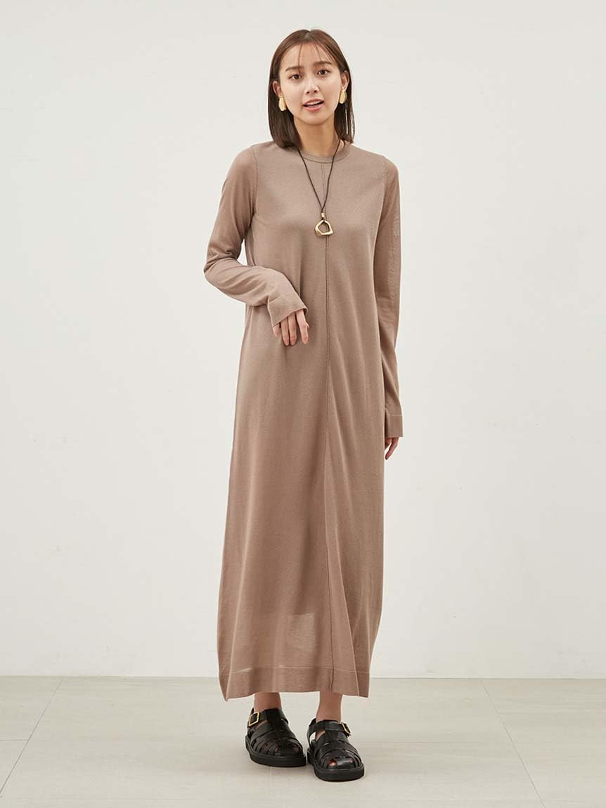 ロング袖のニットワンピースは、程よいハリ感とシアー感のある編み地。Tシャツのような感覚で着られるシンプルな形に仕上げています。