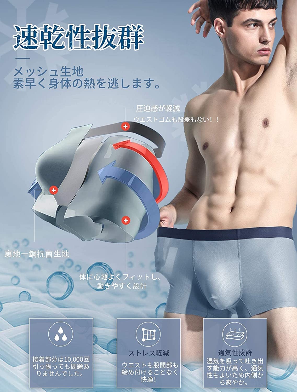 【フィット感抜群】肌触りの良さや着心地の良さを重視して本気でメンズパンツを作りました!薄い!軽い!心地いい!シームレスでストレスを低減させ、絶妙なフィット感を実現します。猛暑に欠かせないファッションアイテムといえば冷感ボクサーパンツ3枚セット。