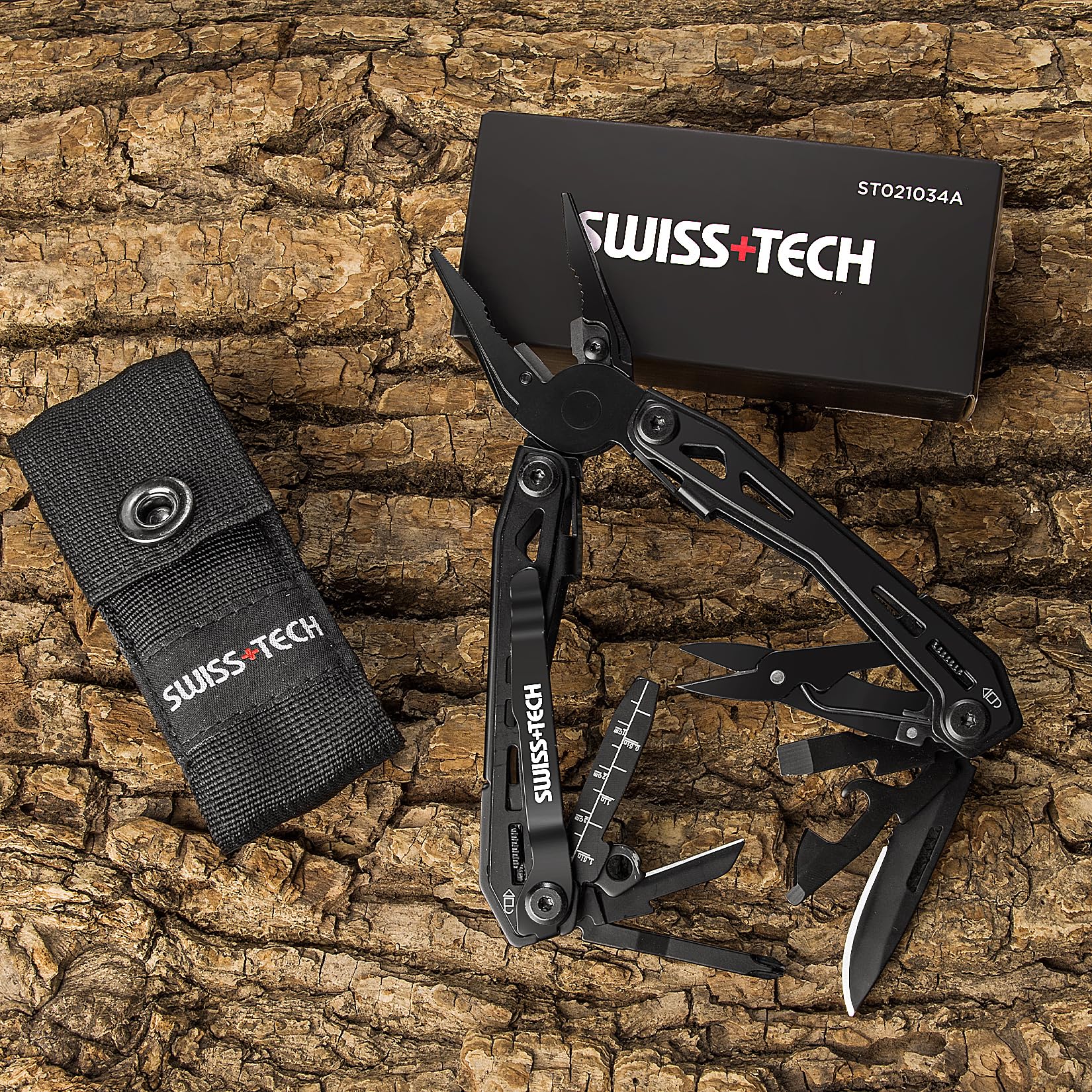 SWISS+TECH 多機能ペンチ アウトドアマルチツール 16-in-1 マルチプライヤー サバイバルツール ロック機能搭載 カッター ノコギリ 栓抜き ヤスリ アウトドア DIY 登山 キャンプ 修理 防災 釣り