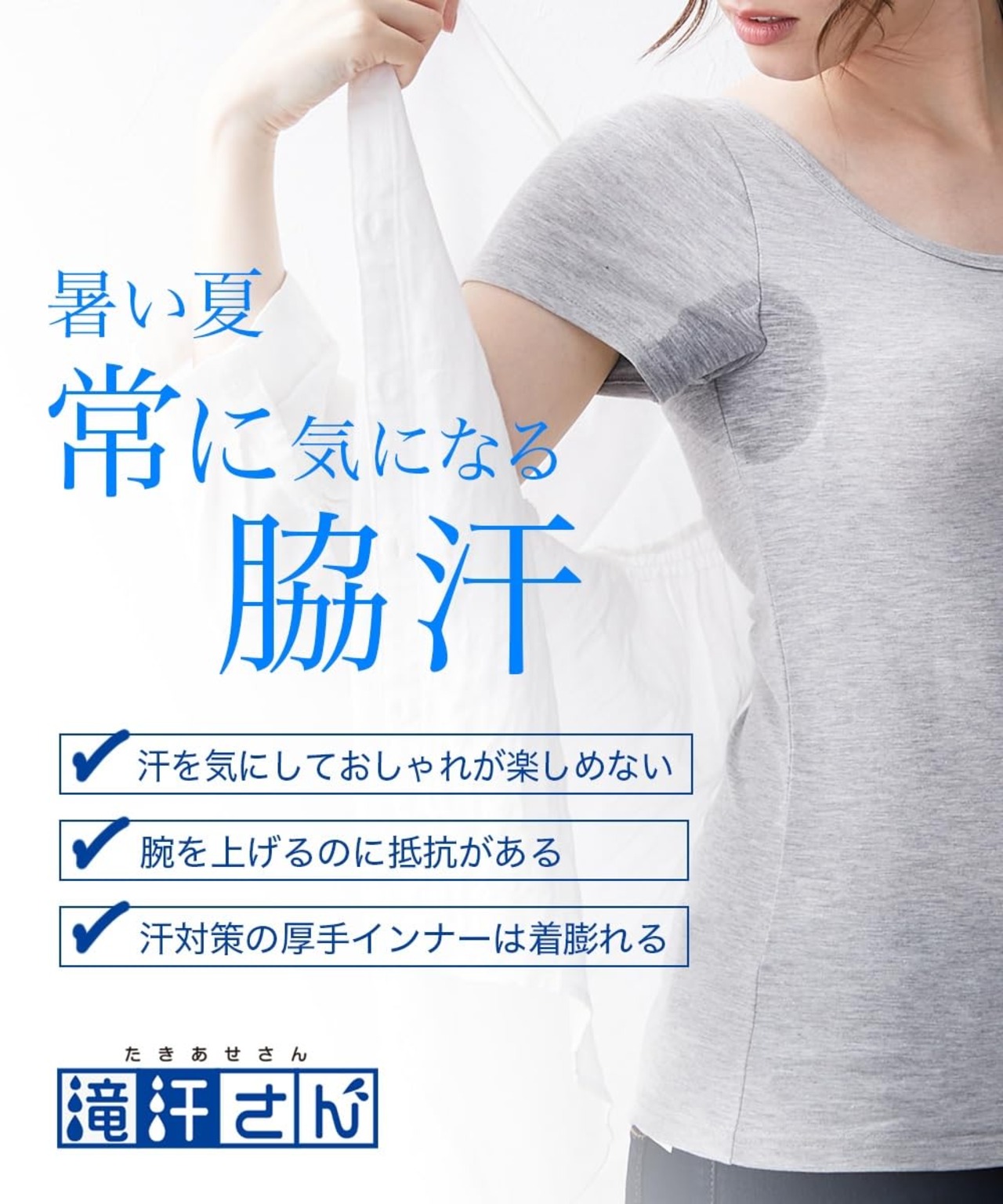 特大の汗取りパッドが脇にフィットし、気になる汗をしっかり吸収して、洋服への汗染みを防ぎます。