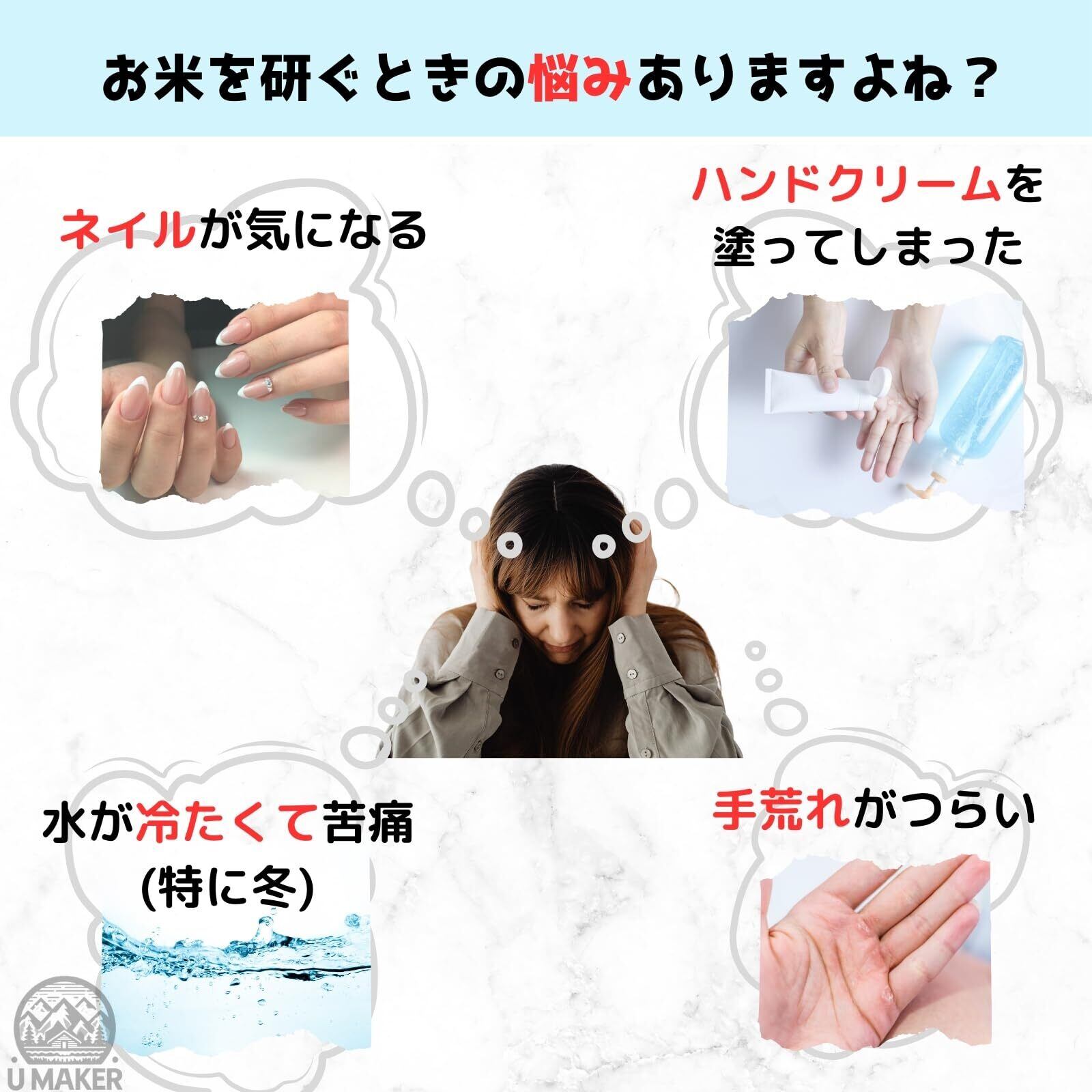 ️【製品概要】冷たい水に触れたくない時や、手荒れ、ネイルを気にされる方にとても便利なツールです。スプーン形状で設計されており、お米を傷つけることなく、軽い回転でしっかりと洗うことができます。