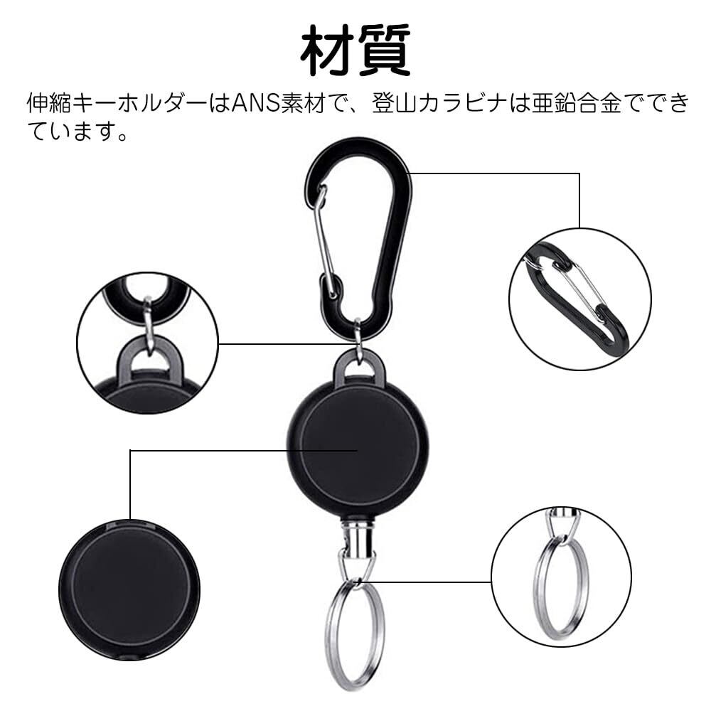 [サムコス] リールキーホルダー カラビナ付 伸縮自在 最長60cm リールストラップ パスケース リール 金具 吊り下げ名札用