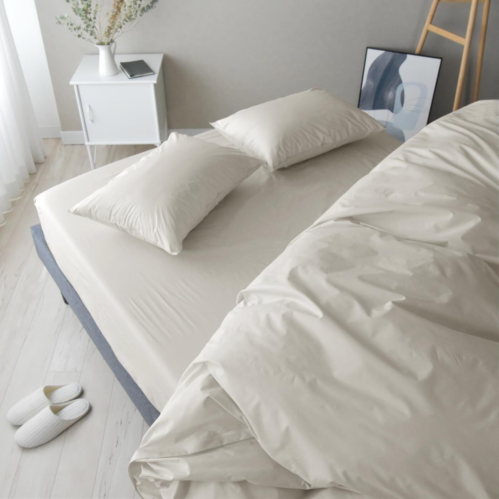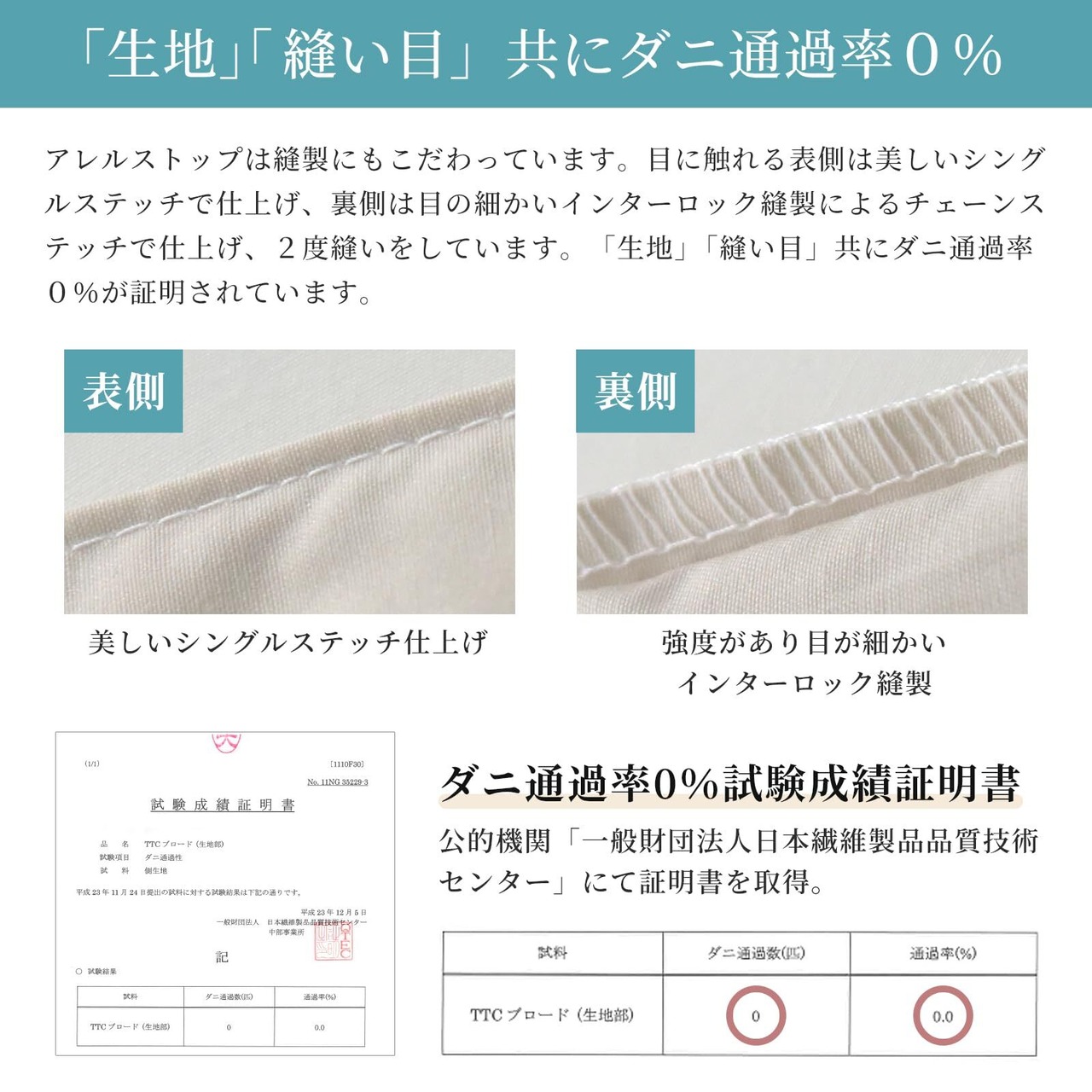 大切な身体を、薬品を使わずダニから守る「Allerstop/d・cut」は、アトピー・アレルギーの方におすすめです。使用生地は、超極細繊維を高密度に織り上げており、ダニやほこり(ハウスダスト)は入り込むことができません。また、縫製にもこだわっており、ミシン目を非常に細かくしてあります。これで、ほとんどのダニの侵入を防ぐことが出来ます。防虫剤などの薬品は一切使用していませんので、お子様やお年寄りにも安心です。生地を高密度に織り上げているため、表面の凹凸が非常に少なく、ホコリやペットの毛がつきにくく、手でサッと払えば落ちてしまうほどです。また、静電気の帯電も少ないので、乾燥した季節でも安心して布団に入ることができます。 ポリエステル80%、綿20%。コットンを適量混合する事により吸湿面をカバーすることで、機能面と吸湿性に優れ、使用感の気持ちの良いカバーになりました。