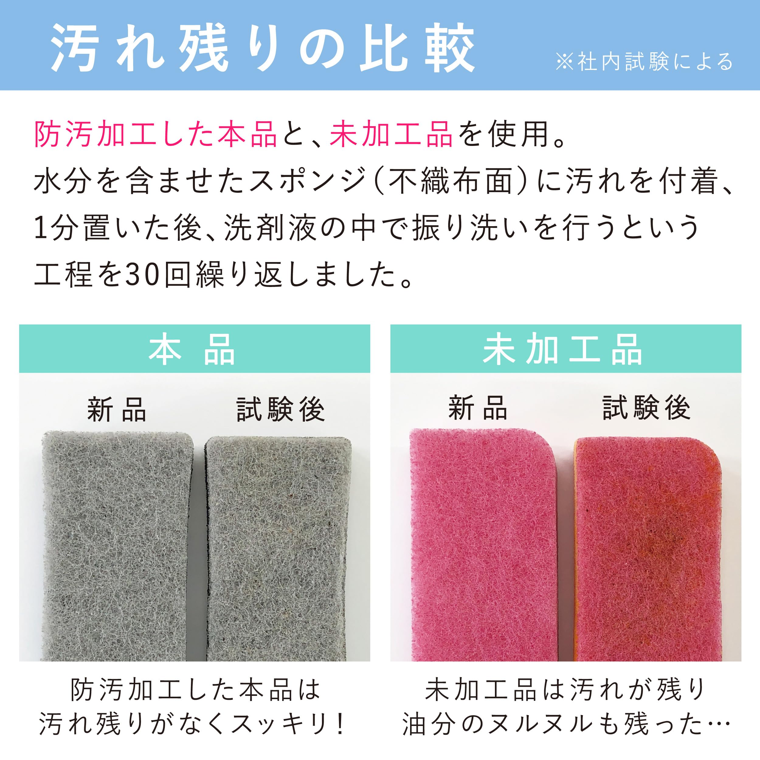 ●特殊加工の不織布で、汚れがつきにくく、キレイが長持ちします(※当社従来品比)