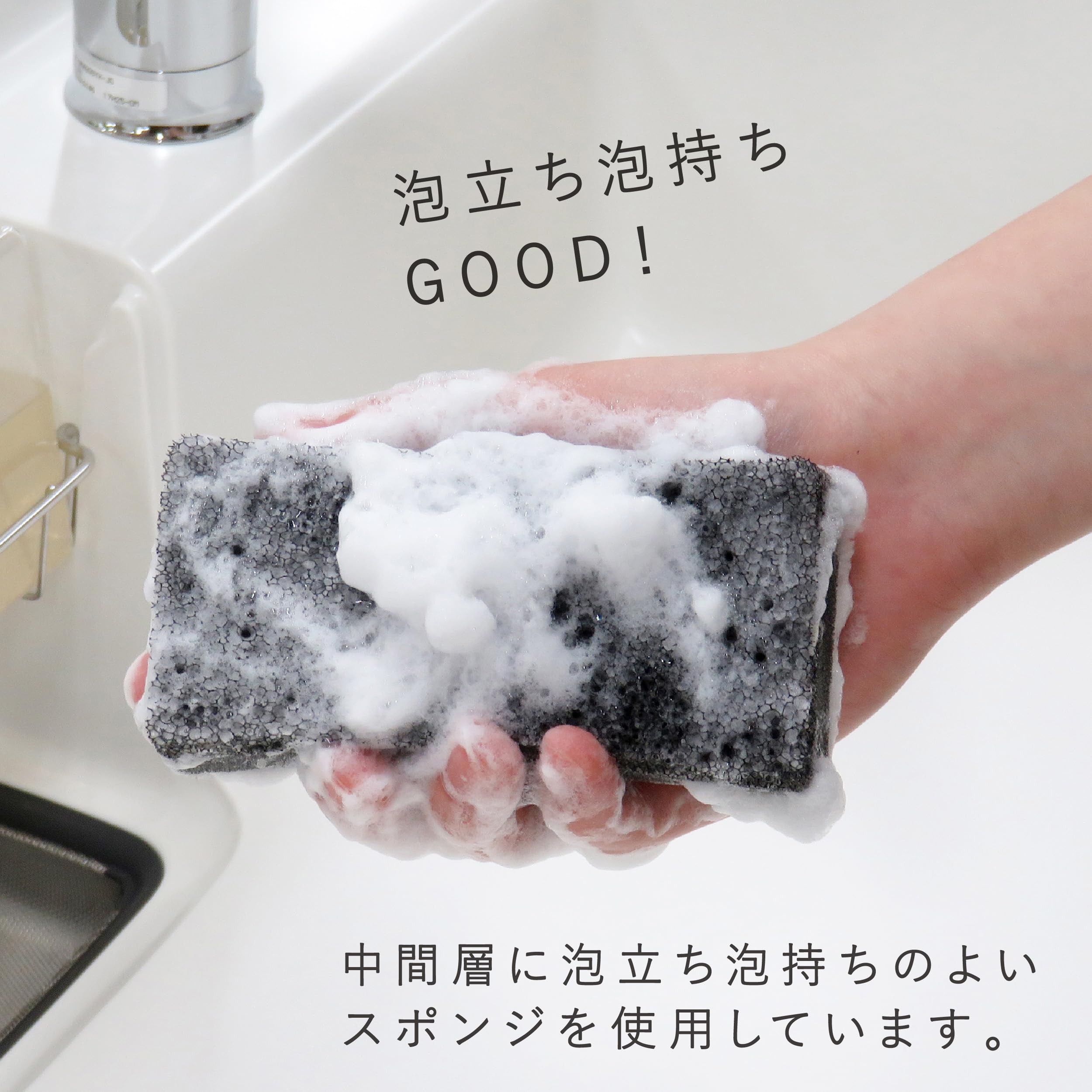特殊加工の不織布で、汚れがつきにくく、キレイが長持ちする キッチンスポンジ ※当社従来品比