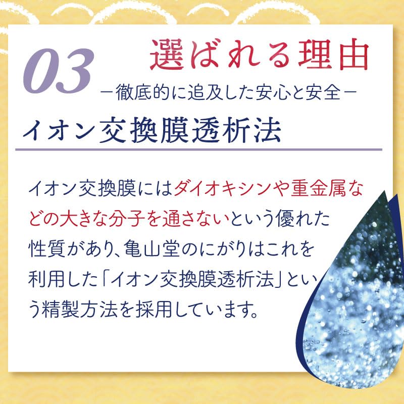 亀山堂のにがりは原液のまま販売しているので、にがりに含まれるミネラルがそのまま含まれています。