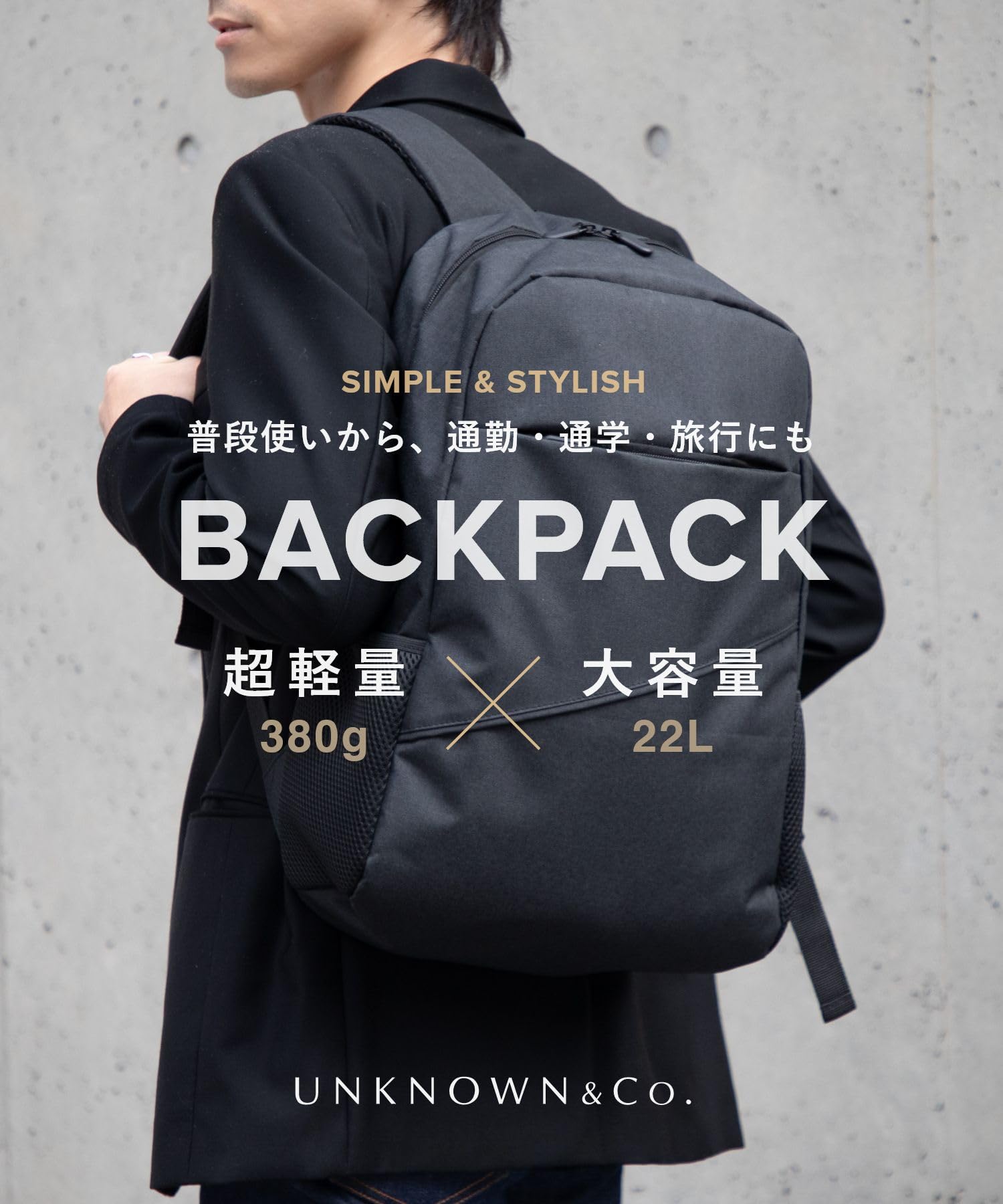 [アンノウンアンドコー] リュック PC収納 ビジネス バックパック 軽量 大容量 通勤 通学 カジュアル ジャパンデザイン メンズ BLACK