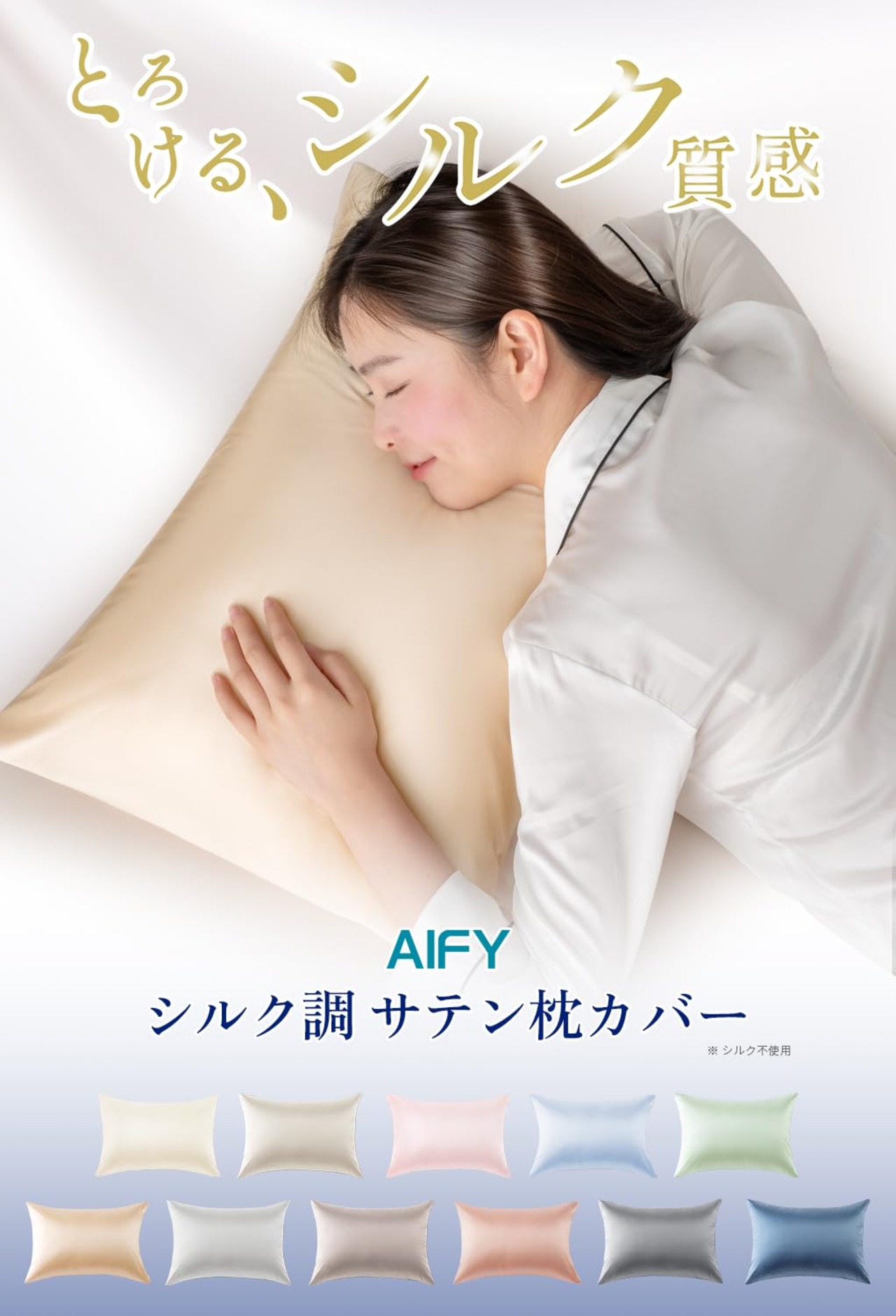 AIFY シルク調 枕カバー 両面サテン まくらカバー ピローケース 枕カバー 43 63 キャップ型 脱着簡単 美髪 洗える ひんやり 摩擦軽減 肌ざわり ツルツル おしゃれ プレゼント 1枚入 タキシードグレー