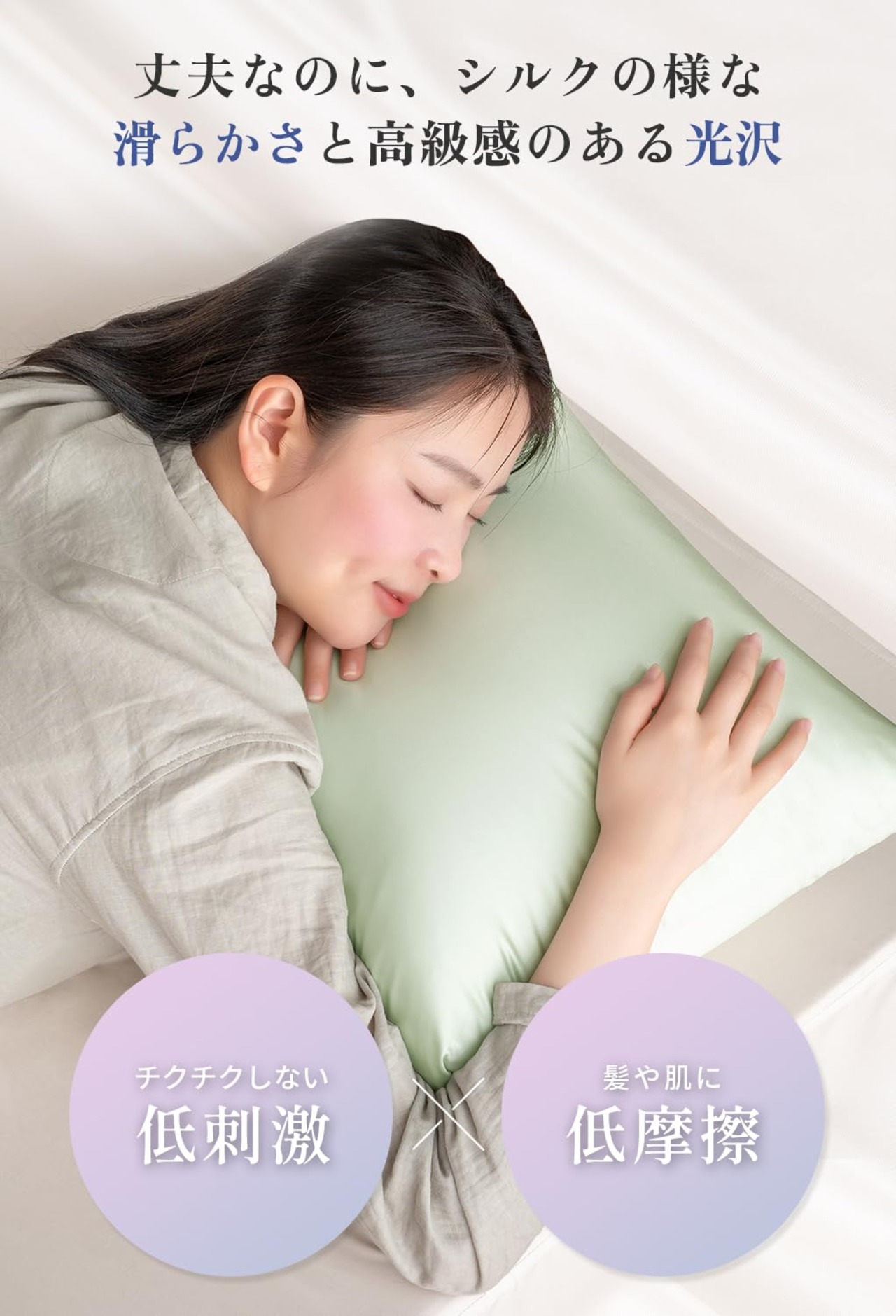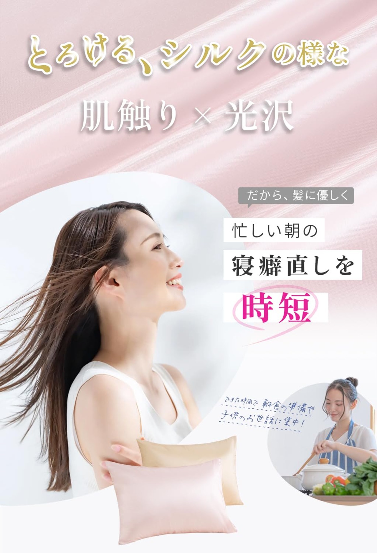 【美髪 最高の寝心地】ツルツルとした上質な生地が、寝ている間の髪の摩擦をやさしくカット、敏感肌にも最適のシルク調枕カバーでございます。シルクのようななめらかな肌触りながら、就寝中の肌ストレスを軽減します。朝まで快適な睡眠をサポート。