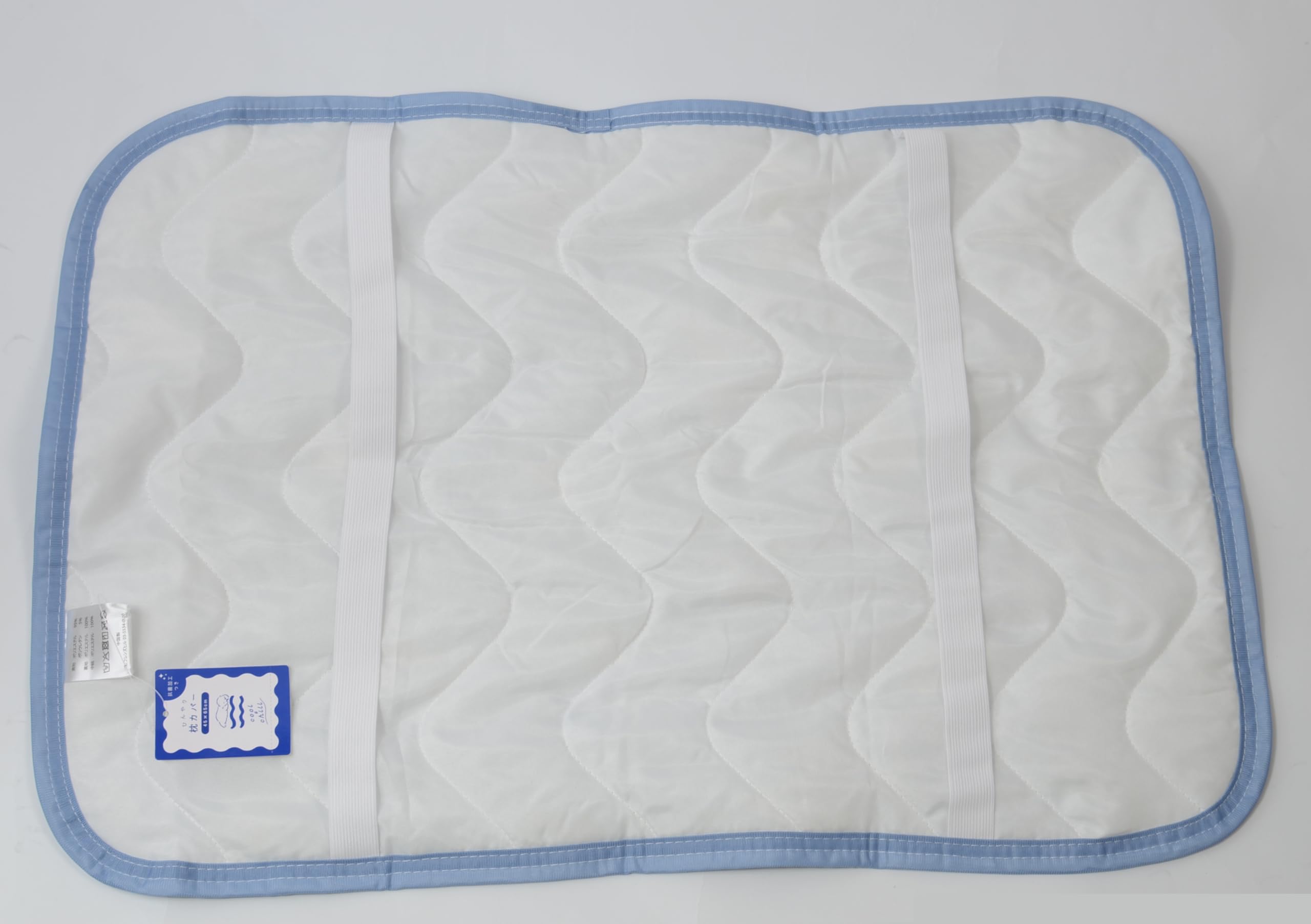 接触冷感素材のひんやり枕カバー。接触冷感度を表すQ-max値が、綿100%が0.20に対し本品は0.40で2倍相当のひんやり具合。抗菌加工で枕に取り付けやすいゴムバンド付きです。