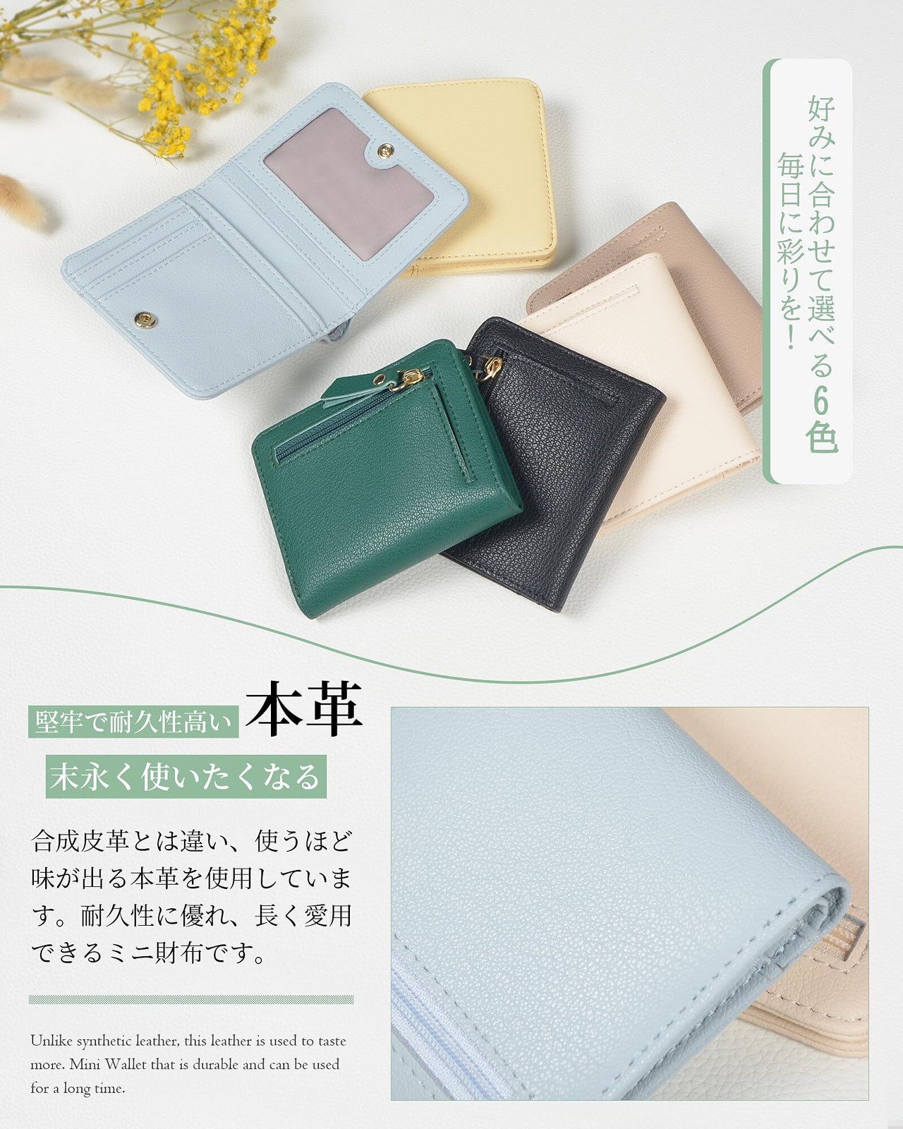【薄い財布】従来のレディース財布の厚みを70%も減らして、厚さはなんと1cmになりました。このミニ財布が手のひらに収まる可愛いらしいサイズ感(10.5*9cm)で、カバンはもちろんのこと、ポーチやポケットに入れてもかさばらない2つ折り財布です。