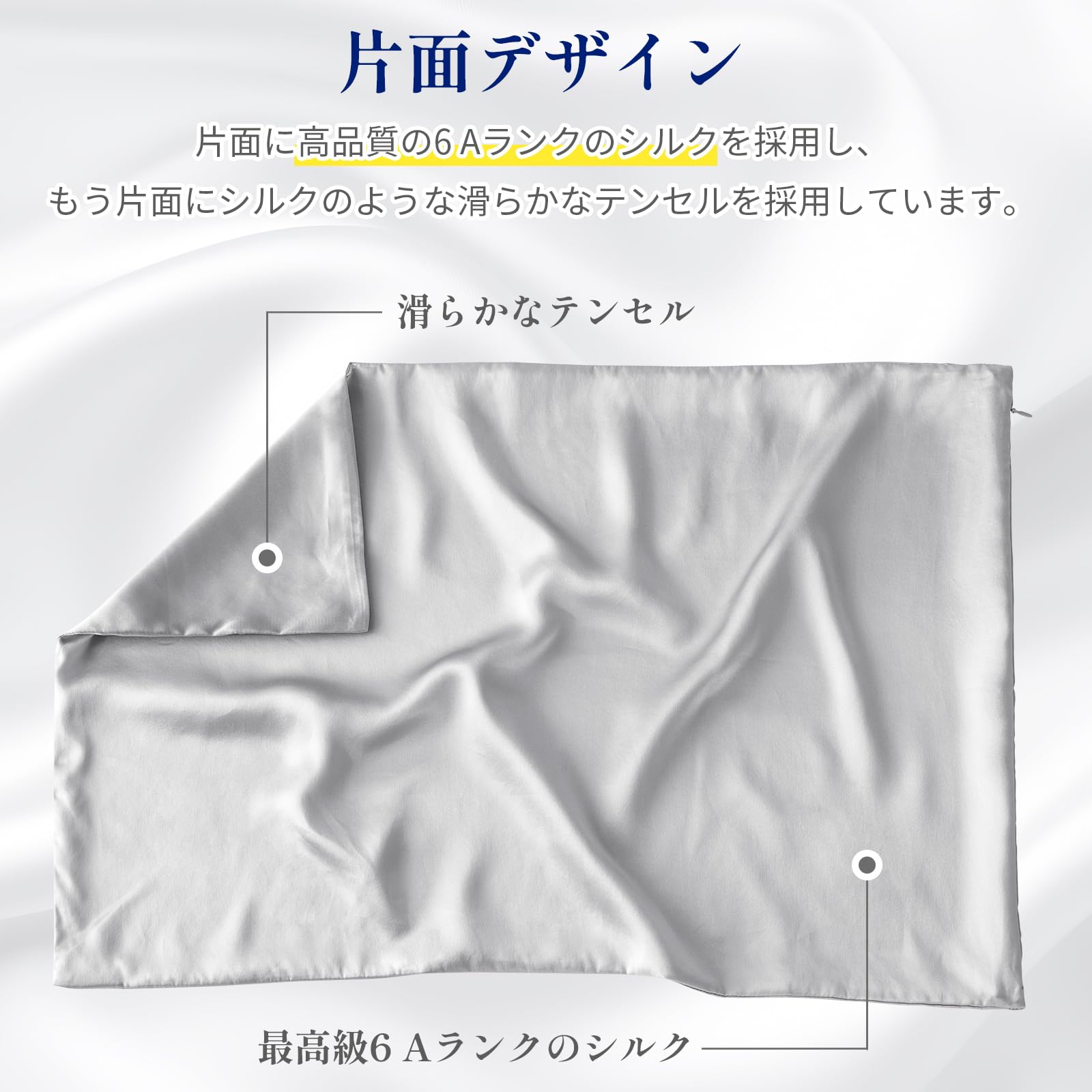 AIFY シルク枕カバー シルク100% まくらカバー 6Aクラス 片面シルク 枕カバー 43 63 美髪 美肌 洗える 敏感肌に優しい 良い通気性 摩擦軽減 抗菌防臭 乾燥対策 静電気防止 ファスナー式 四季適応 贈り物 1枚セット 43×63cm シルバグレー