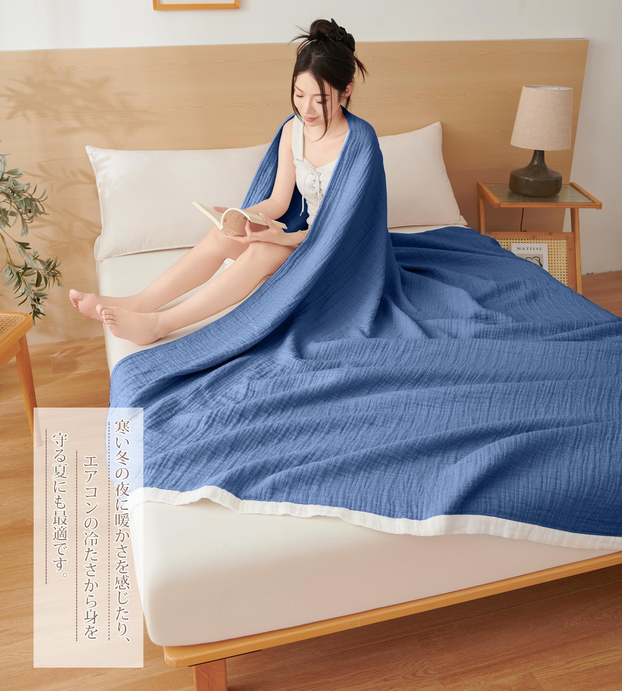 【ふかふかソフトな風合い】AYOは、睡眠にとって快適なガーゼケットがいかに重要であるかを深く理解しており、このブランケットを企画・製造しました。私たちは常にお客様に健康で高品質な製品を提供することに努め、「家の隅々に快適さをもたらす」ことを最も重要な使命としています。ぜひ本物のAYO製品をお選びいただき、暑い夏の日のひざ掛けや、ソファでくつろぐときのひざ掛けとしてもおすすめです。 幾重にも織り上げることで繊維の間に空気を溜め込み、体温を適度に保つので、冬には毛布の代わりとしても使えます。春夏はもちろん、秋冬も大活躍! 羽毛ふとんと一緒に使うインナーケットとして、またひざ掛けなどにも活用できます。幅広い活用方法!