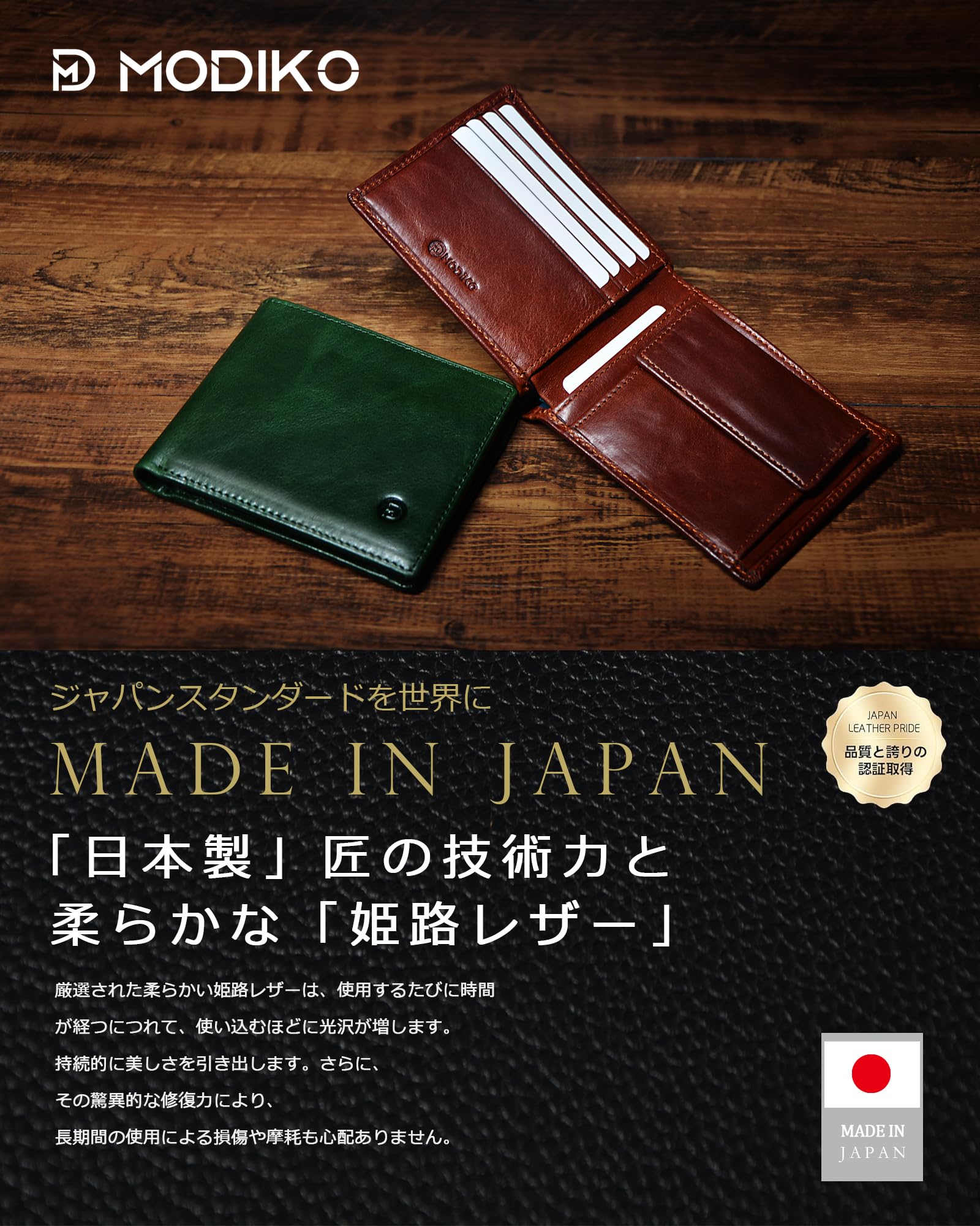 [Modiko] 財布 メンズ 2つ折り 日本製 姫路レザー 二つ折り財布 本革 柔らかい 小銭入れ 一流の革職人が作る レザーソムリエ監修 牛革 父の日 使いやすい 軽い 薄い (ダックグーリン) (コーヒー)