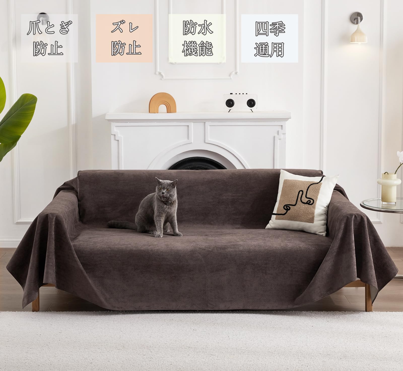ソファカバー 防水 犬猫対策 マルチカバー 長方形 撥水加工 ズレ防止 ソファカバー 2人掛け 3人掛け 肘付き 肘なし 防水 ソファーベッドカバー 滑り止め ソファーシーツ 多機能 無地 北欧風 ブランケット 爪とぎ防止 汚れ防止 ソファー保護カバー 防塵 テーブルクロス 洗える 四季通用 コーヒー 180cm*230cm