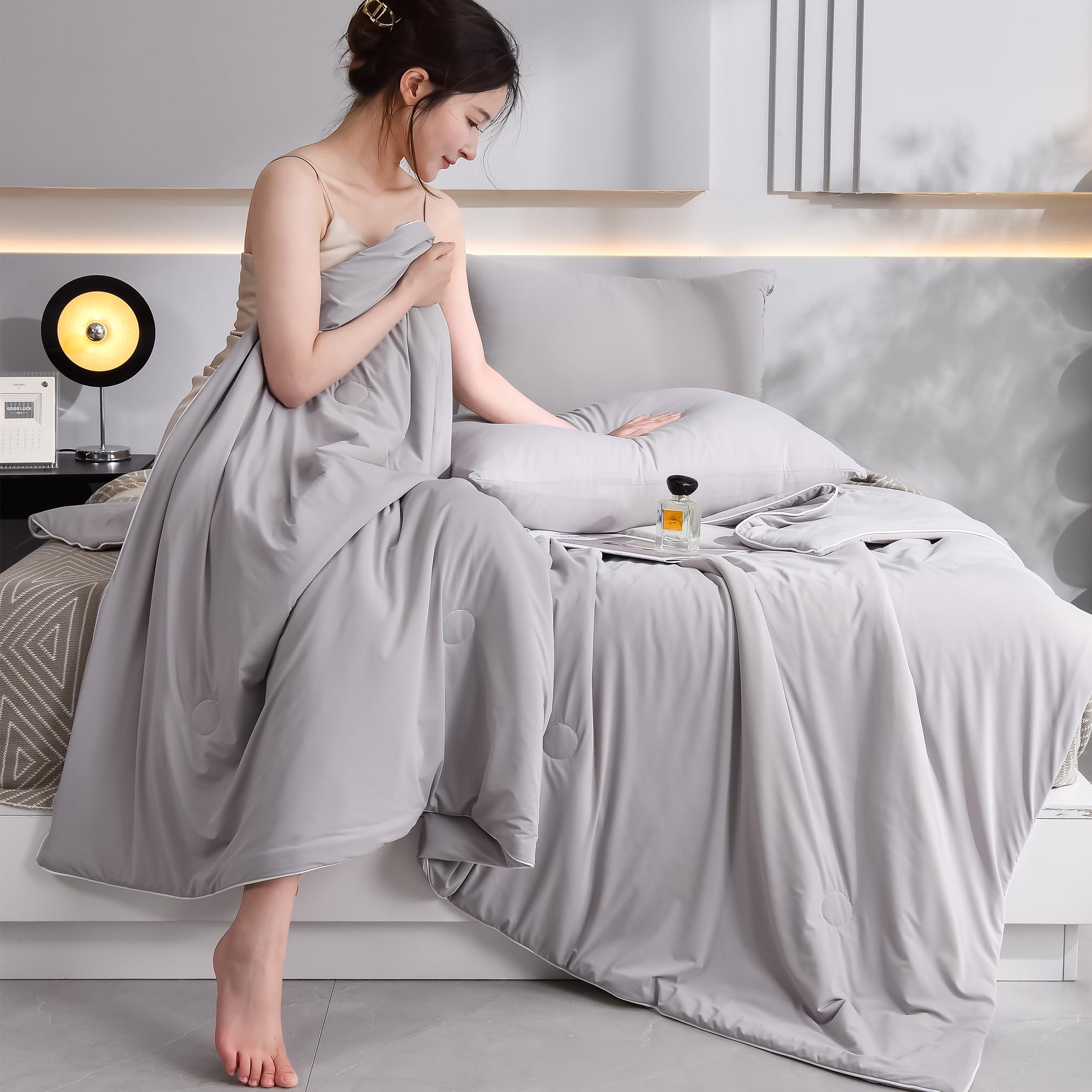 夏用掛け布団 肌掛け布団 シングル セミダブル 両面接触冷感ニット生地 通気性 抗菌防臭 可洗濯機 色褪せなし 軽量 布団140×200cm