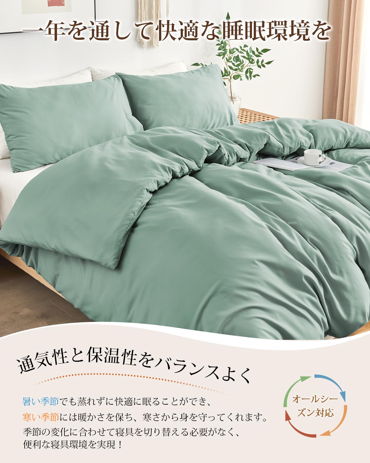 【新着商品】HEVUMYI 掛け布団カバー シングル オールシーズン 吸水速乾 布団カバー ダブルファスナー 8箇所紐付き 掛ふとんカバー 丸洗いOK ピーチスキン加工 長く使える摩擦耐久性(シングル・150X210cm グリーン) | asaRulu0511