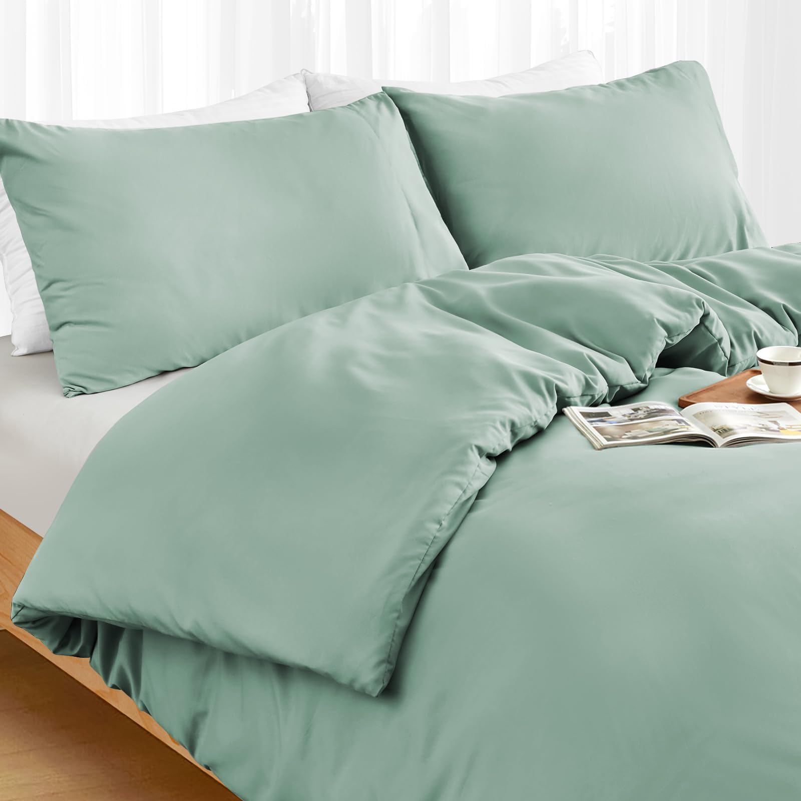 HEVUMYI 掛け布団カバー シングル オールシーズン 吸水速乾 布団カバー ダブルファスナー 8箇所紐付き 掛ふとんカバー 丸洗いOK ピーチスキン加工 長く使える摩擦耐久性(シングル・150X210cm グリーン)