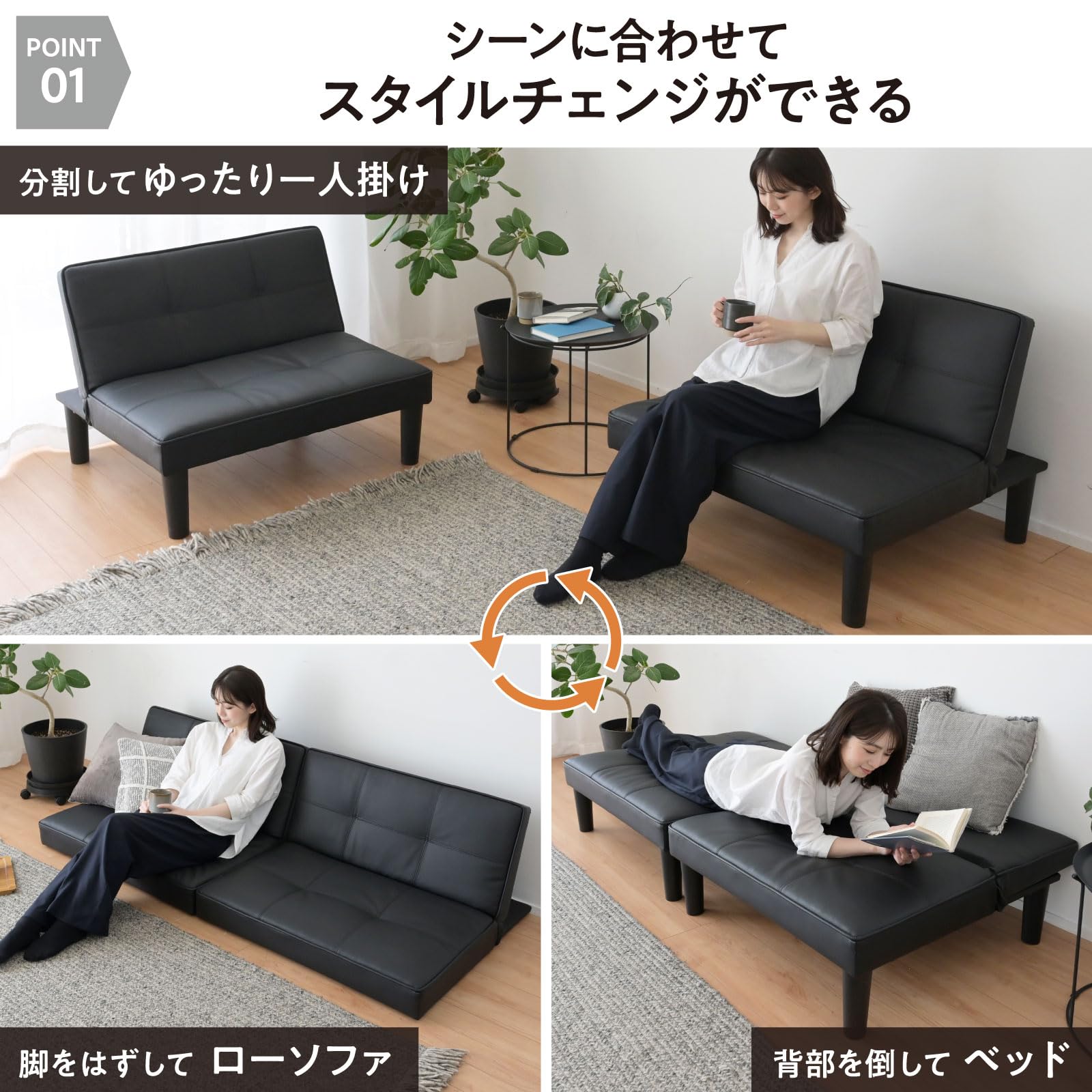 【マルチに使えるソファベッド】2人掛けのソファはもちろん、1人掛けのチェアとしても、さらにはベッドとしても使えるリクライニングソファです。