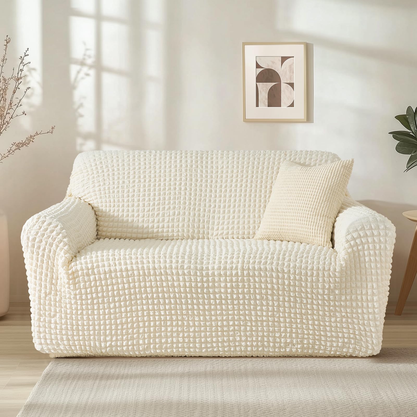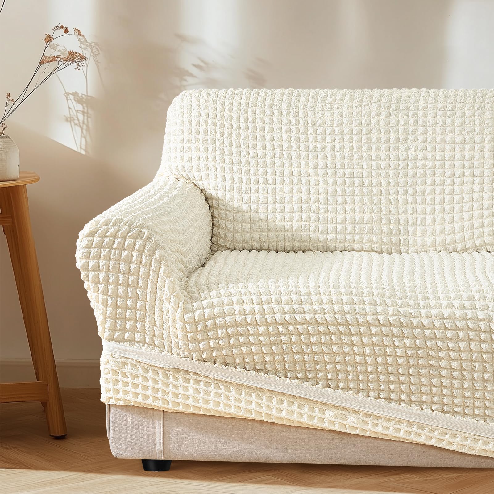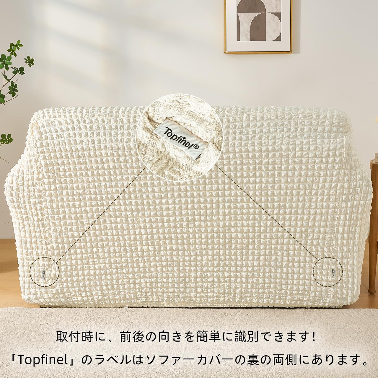 Topfinel ソファーカバー 3人掛け 肘付き クリーム 無地 北欧 滑り止め ストレッチ フィットタイプ 防塵 伸縮素材伸び良く 汚れ 洗える 柔らかい 四季適用