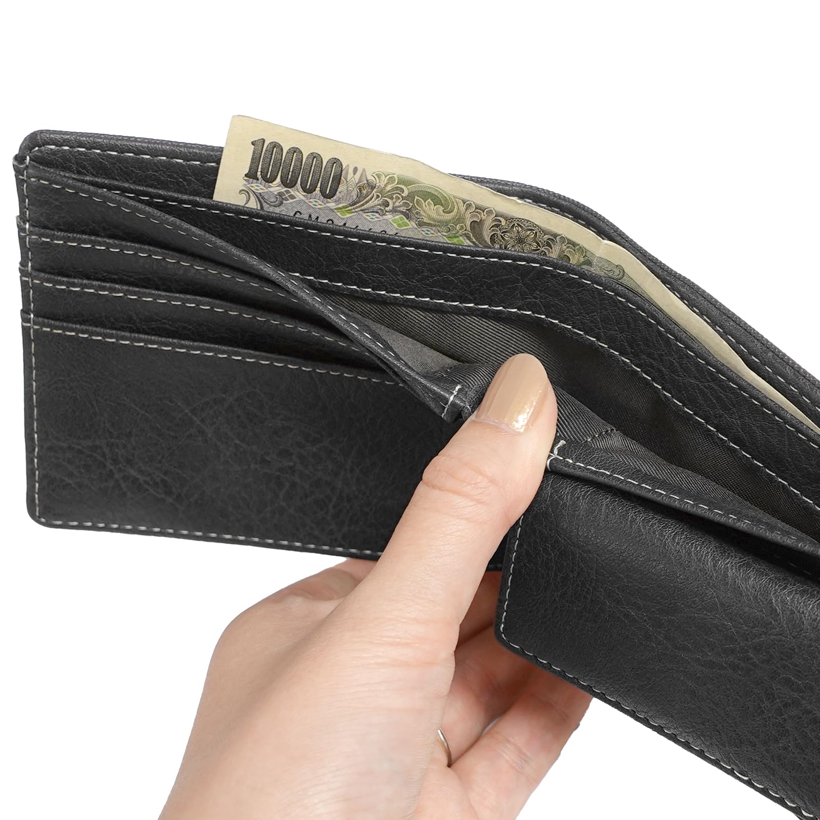 二層式紙幣収納スペース、サイドマチ付の小銭収納スペースなど、使い勝手にもこだわった一品です。