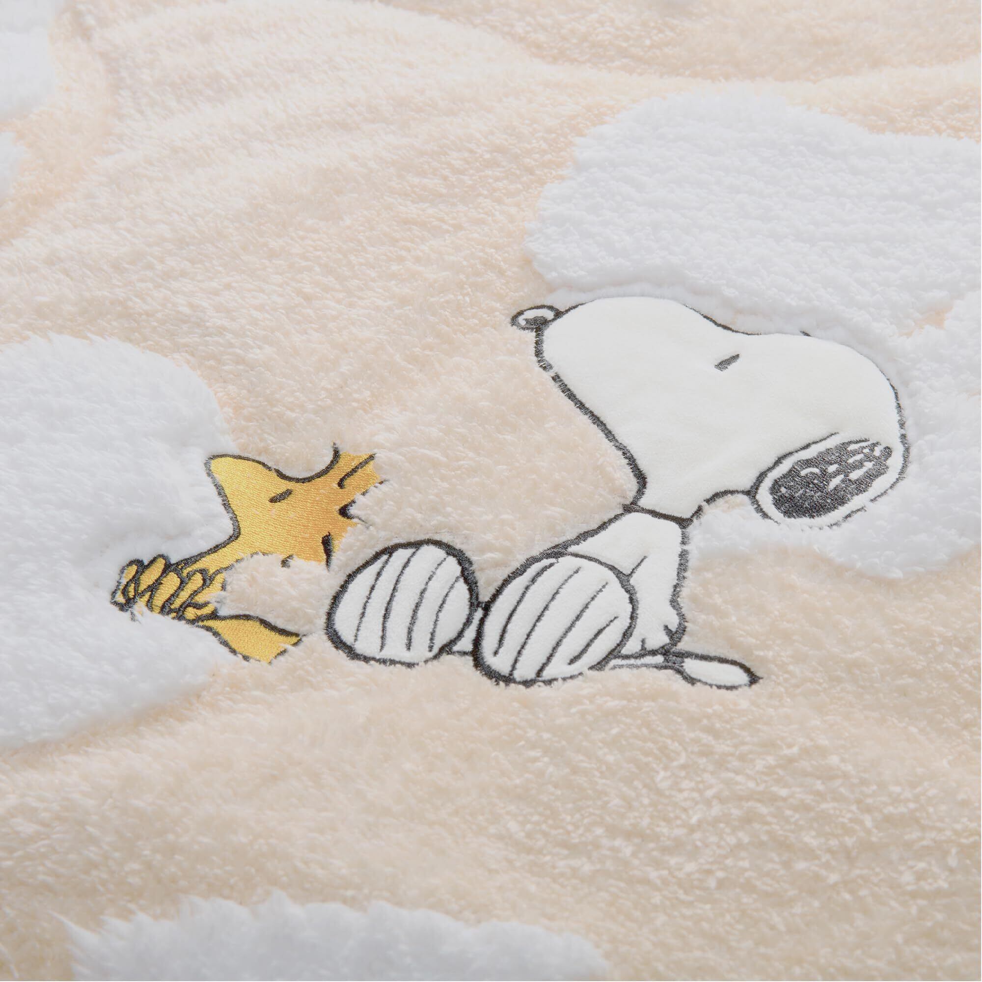 ◆立体的なふわふわボアの凹凸でスヌーピー達のシルエットを表現。肌にふれる部分はシープ調のもこもこ生地、あったか仕様で寒い冬にもぴったり。肌触りがよく、お布団に入った瞬間もヒヤっとしません。