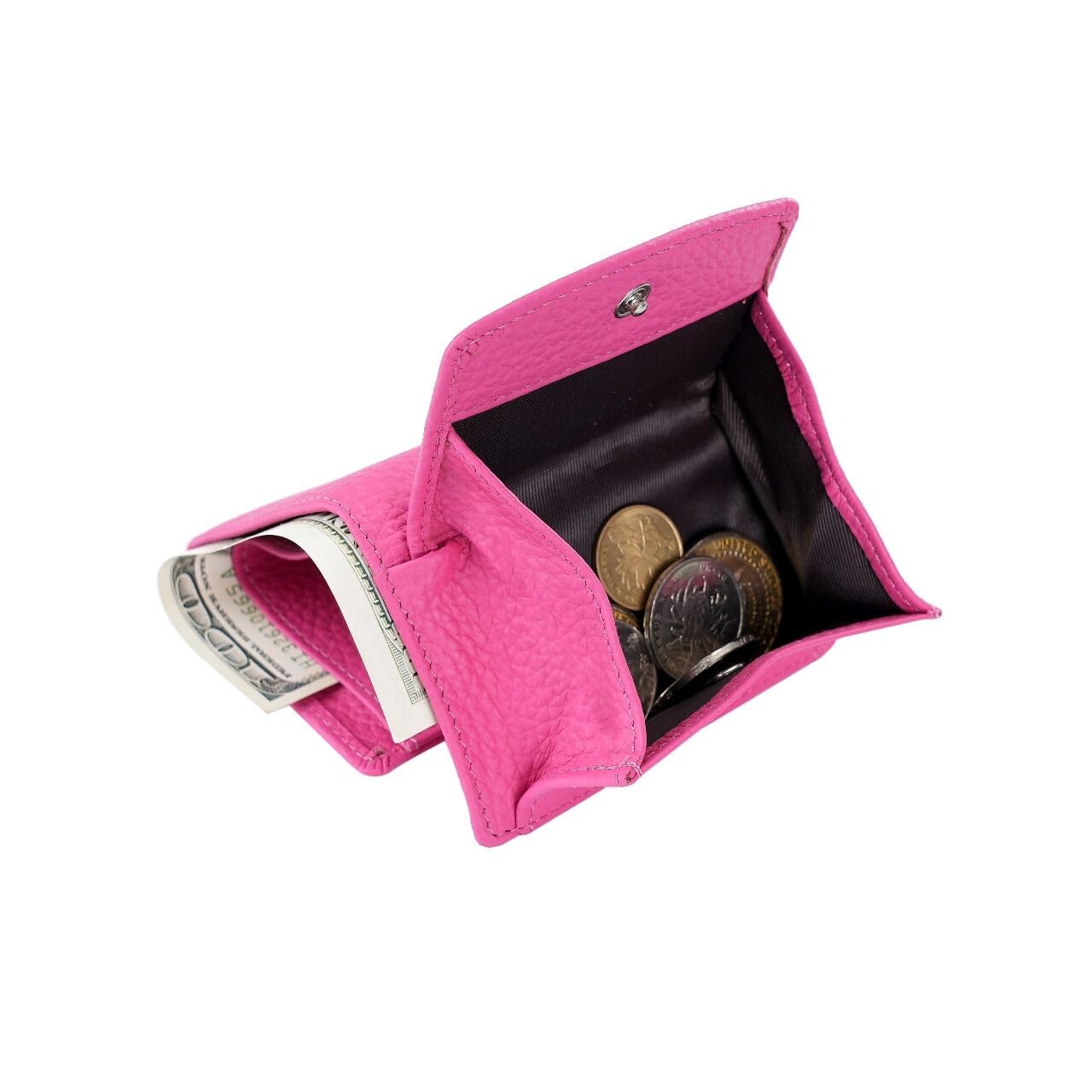 手のひらサイズ(約W横9.5*H縦7.5*マチD3cm )の小さいミニ財布ですが収納力抜群です。外側:コイン入れ×1、カードポケット×1、 内側:お札ポケット×1、カードポケット×6。豊富な美しいカラーバリエーションがあり、薄型だけど、たっぷり収納で、毎日持ちたいレディース三つ折りミニ財布です。