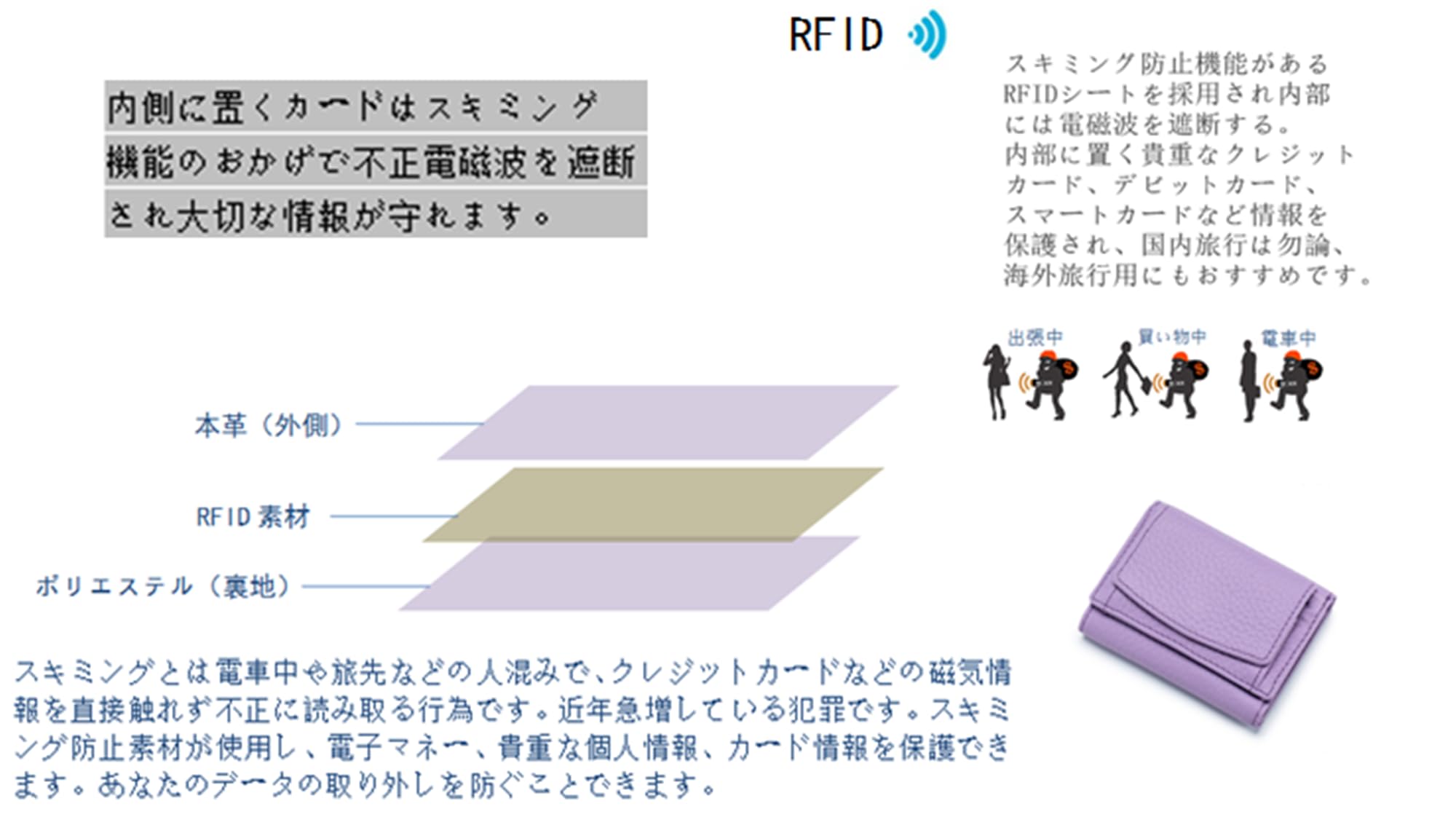 [リオルネ] ミニ財布 レディース 小さい財布 ミニウォレット コンパクト三つ折り財布 レディース 薄い財布 スキミング防止 財布 本革 (パープル)