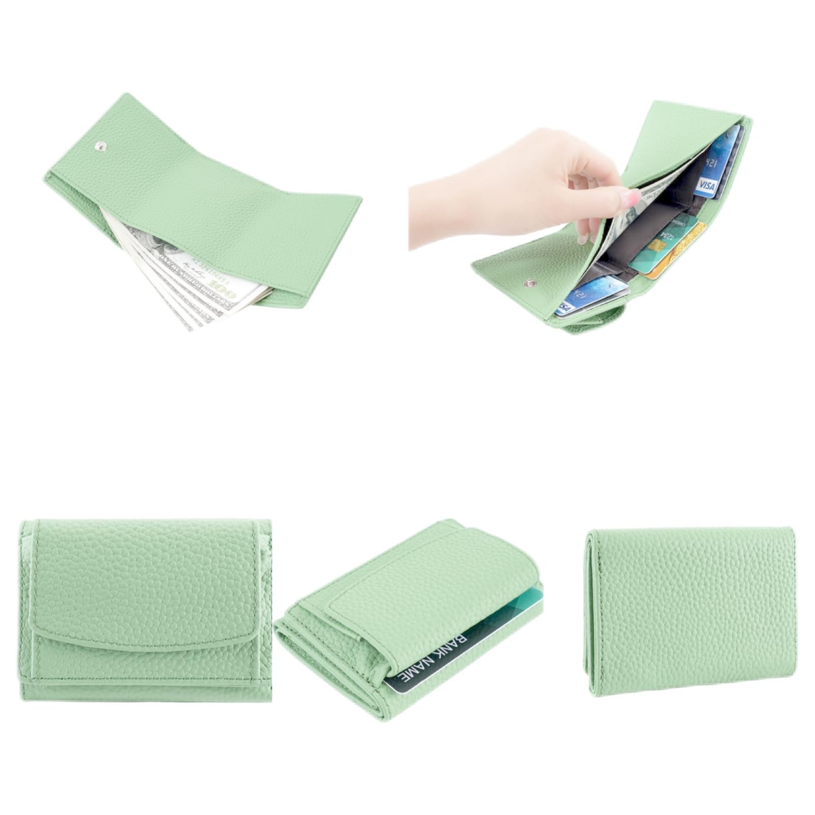 [リオルネ] ミニ財布 レディース 小さい財布 ミニウォレット コンパクト三つ折り財布 レディース 薄い財布 スキミング防止 財布 本革(グリーン)