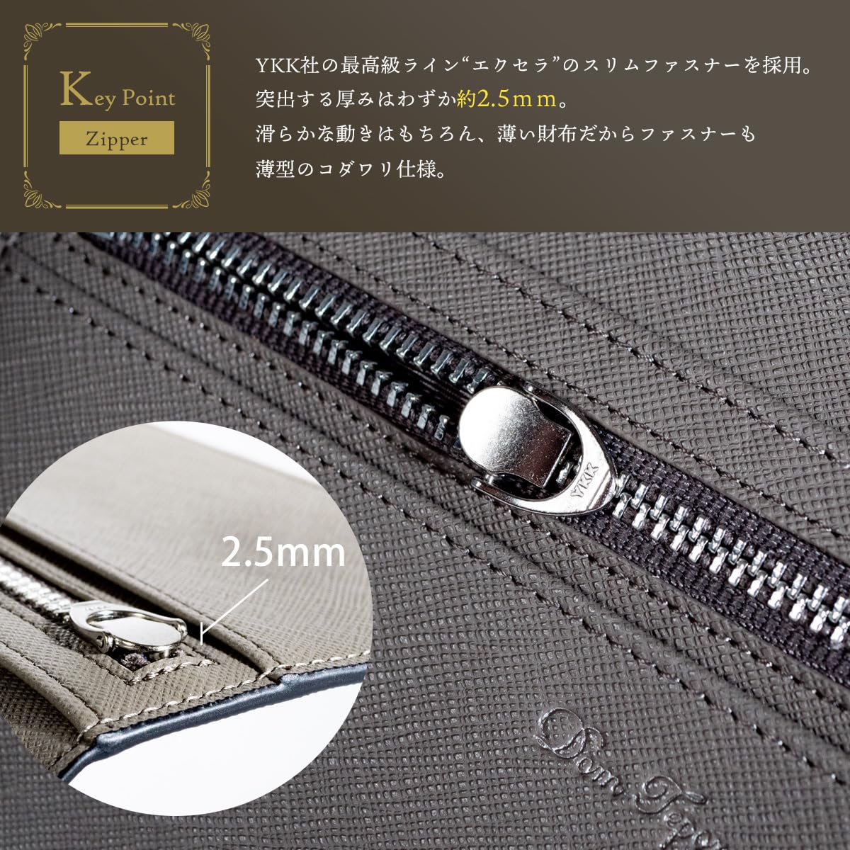 [Dom Teporna] 長財布 メンズ 牛革 極薄1cm YKKファスナー 小銭入れあり 薄い 財布 お札入れ カード入れ