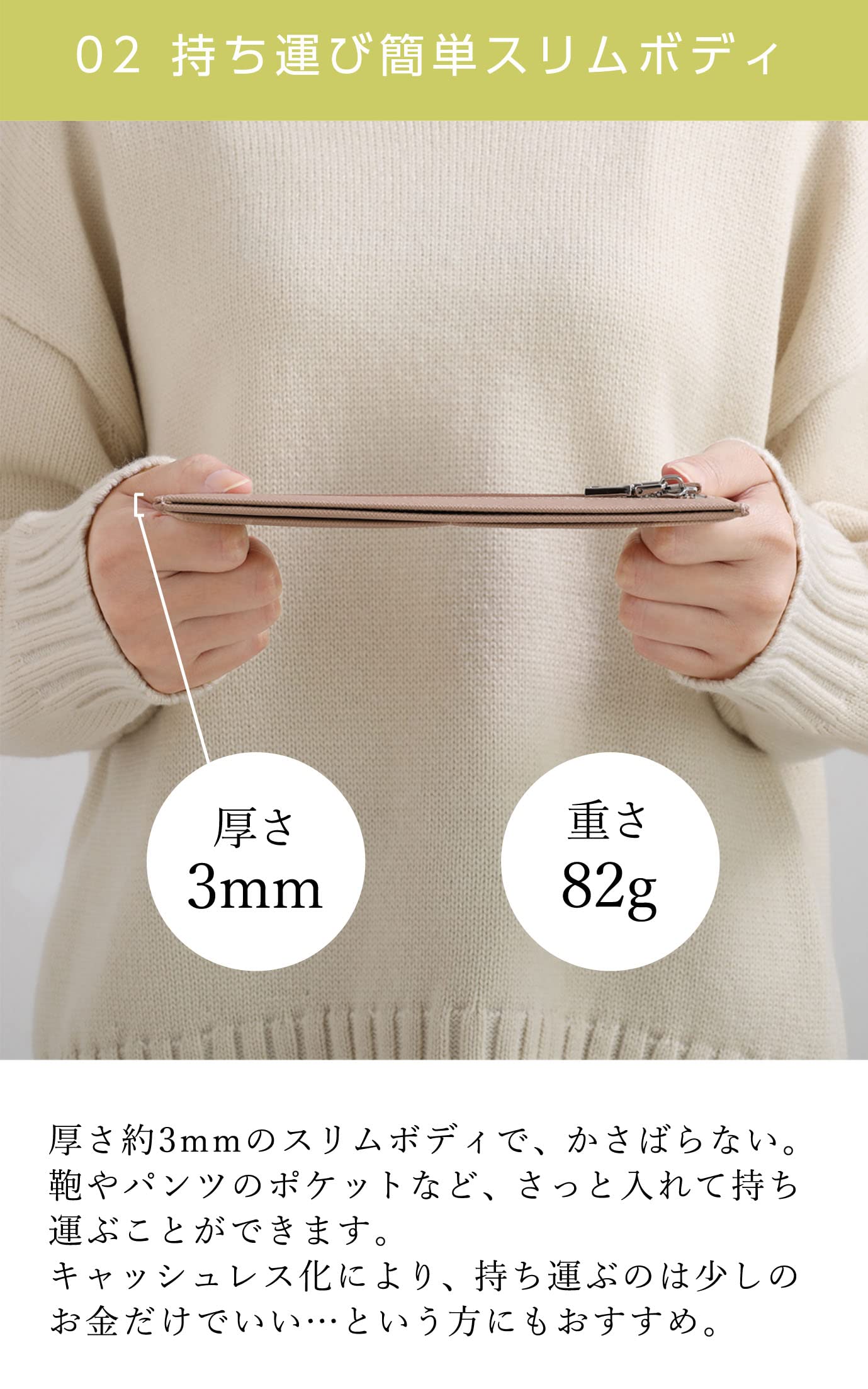【薄さ3mmでかさばらない】クラス最高レベルの極薄3mmでも丈夫でしっかりしており収納力も十分に確保しております。
