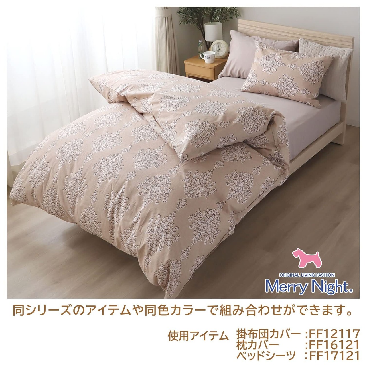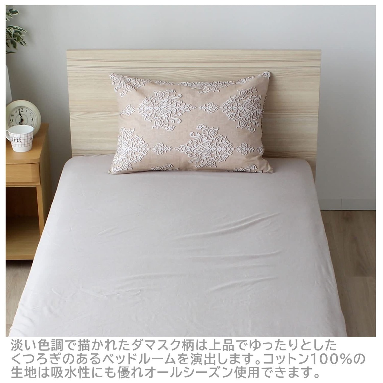 メリーナイト(Merry Night) 枕カバー 「ダマスク」 ベージュ 約43×63cm ファスナー式 まくらが入れやすい 綿100% 心地よい肌触り オールシーズン 洗える FF16117-96